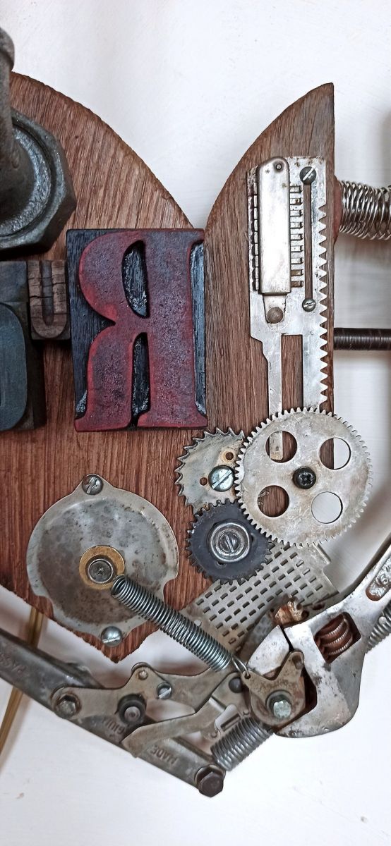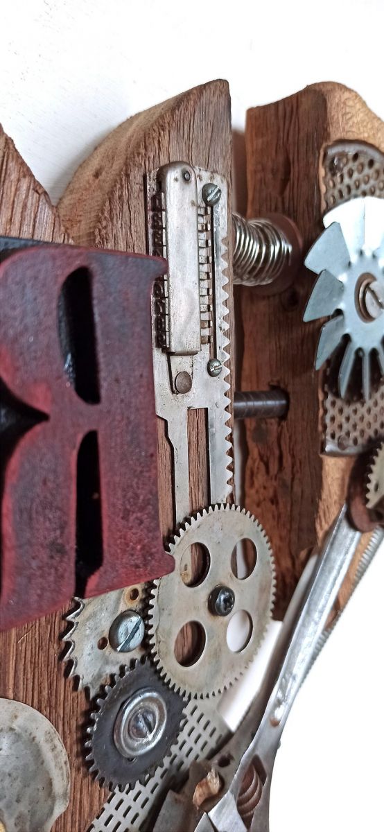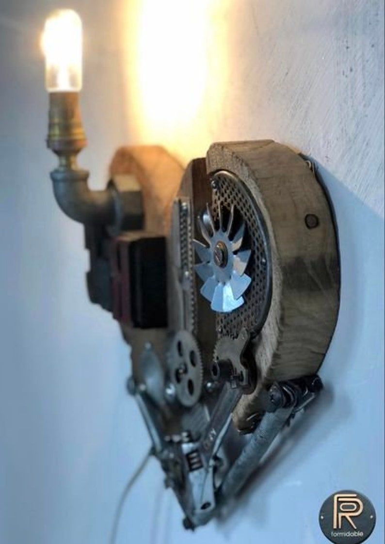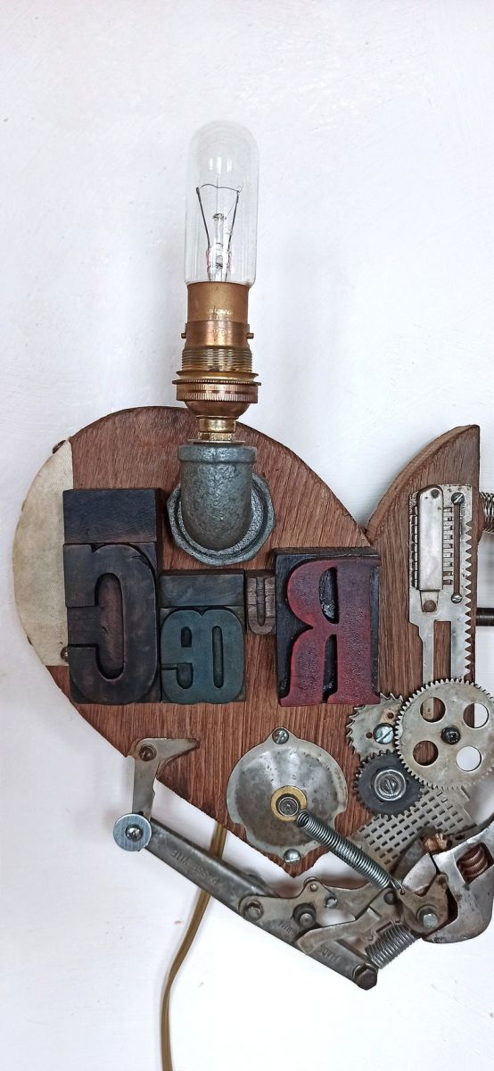 Grande lampe artistique entièrement réalisée avec des objets détournés, vintage .