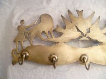 Porte-manteau vintage industriel marron 4 portants à restaur