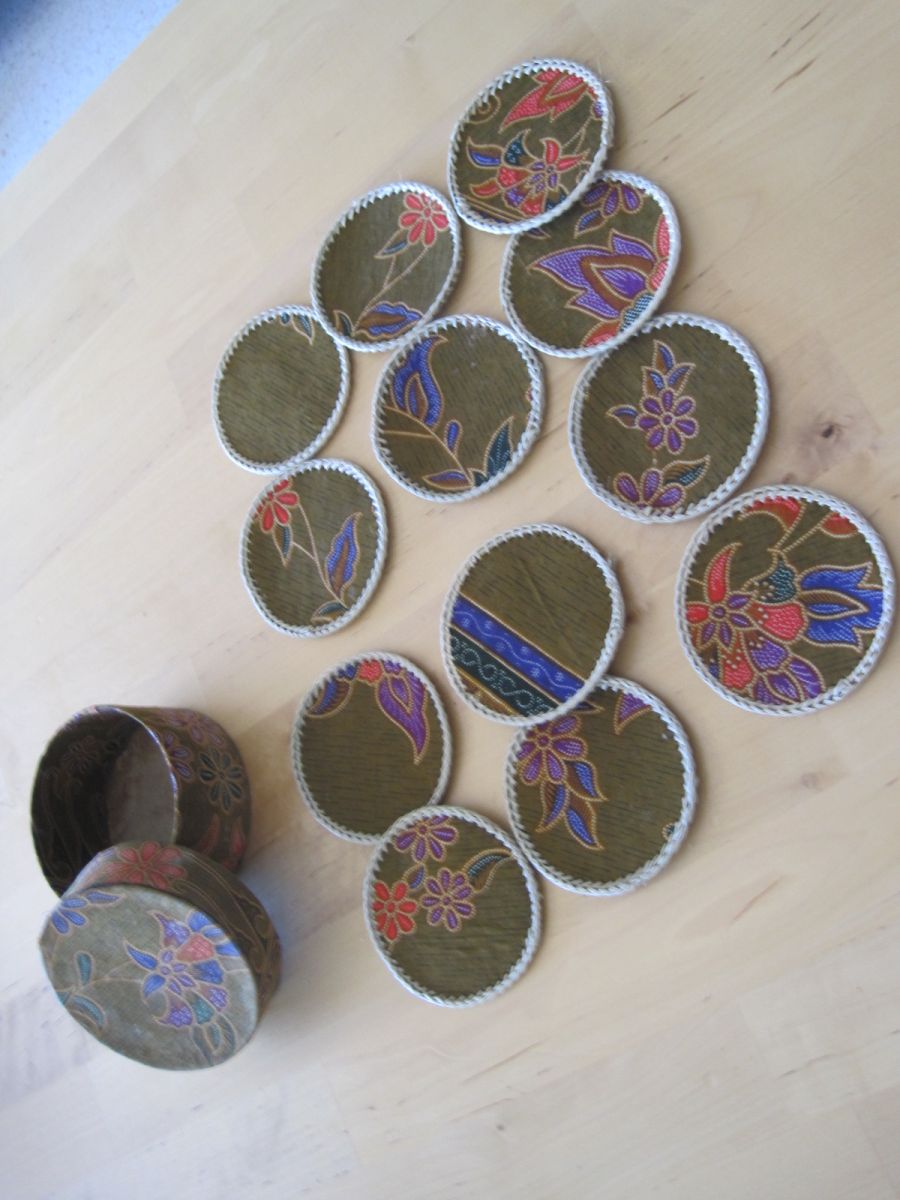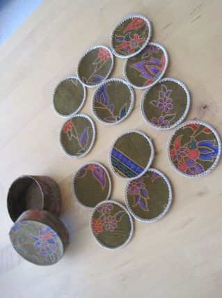 12 dessous de verres en rafia/tissu