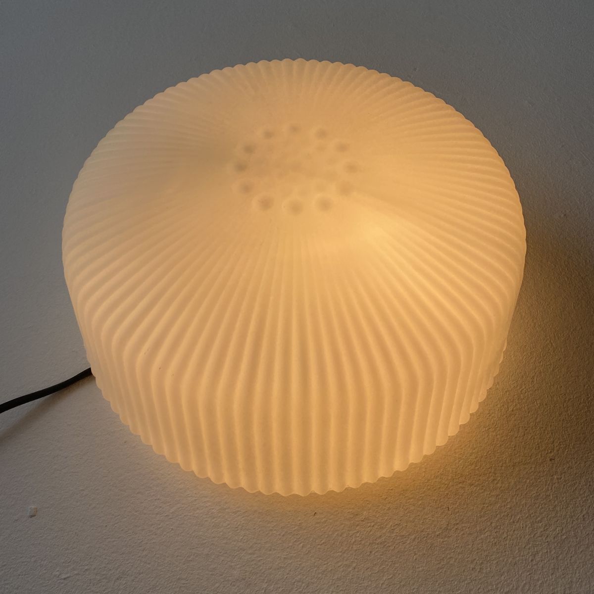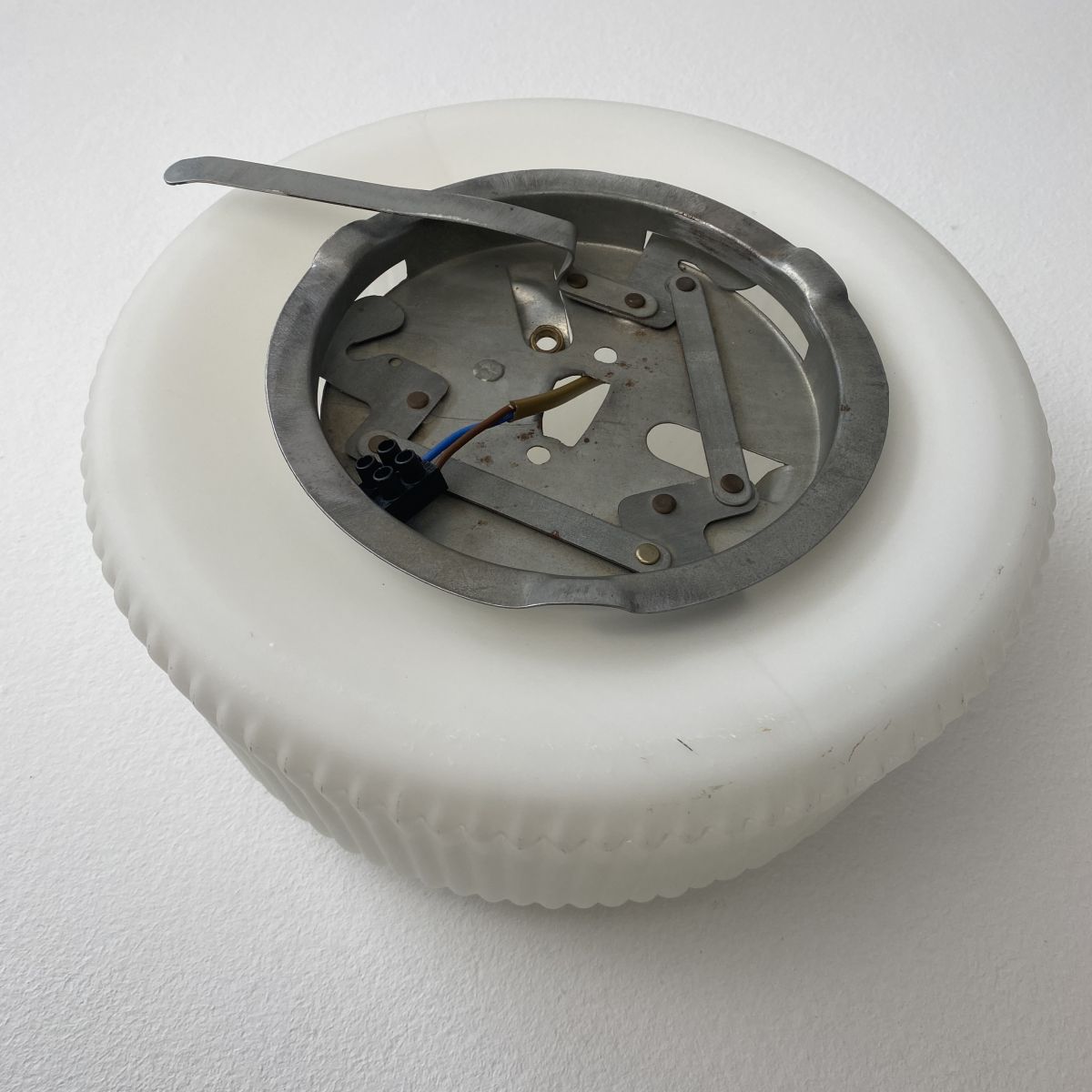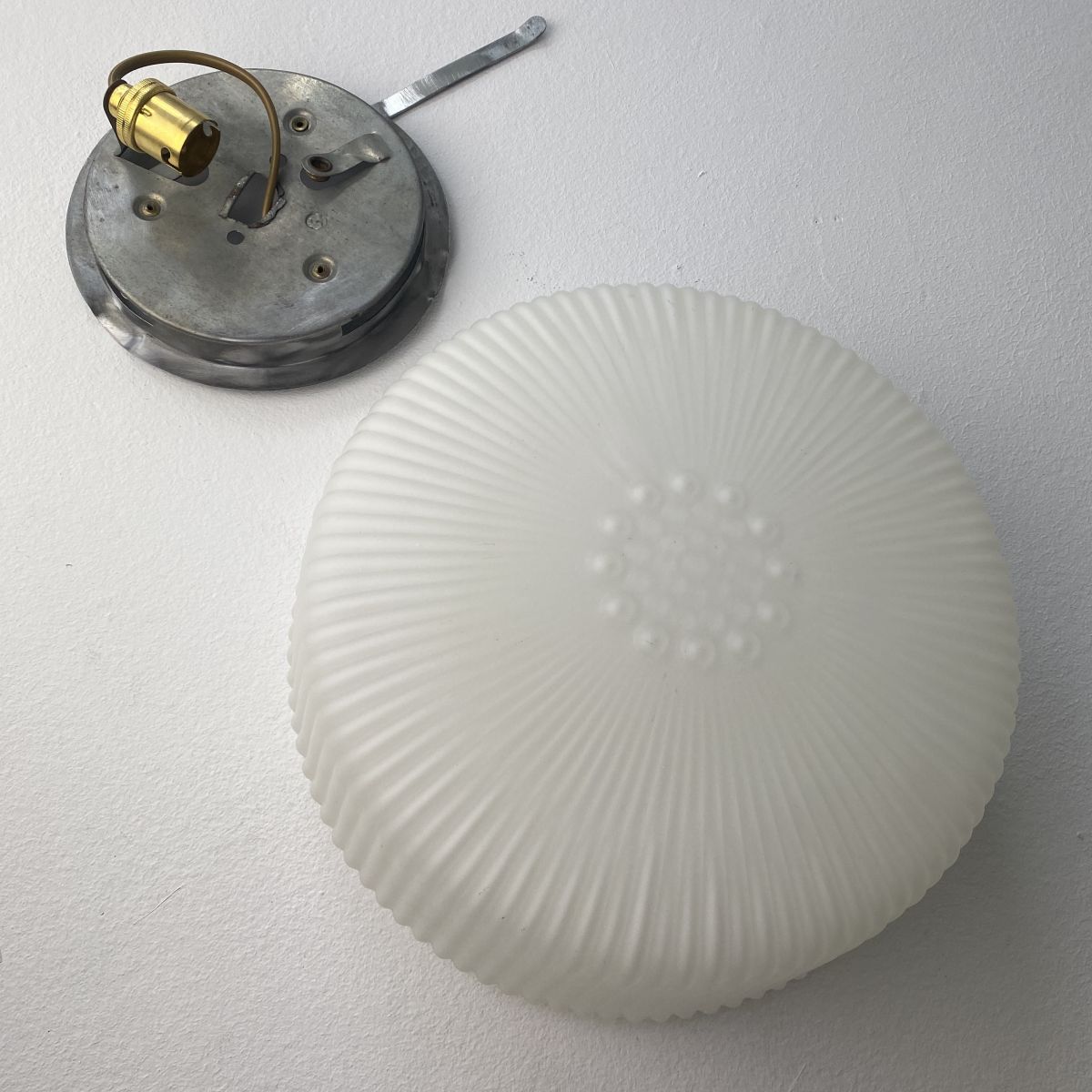 Belle applique ronde en opaline. Années 1960. Lumière tout en douceur. En bel état général à part quelques marques d’usage.