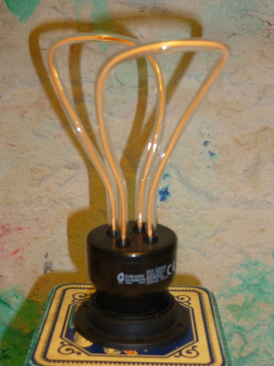 Une ampoule ( fournie ) a la silhouette d'un papillon en vole illumine cette lampe .