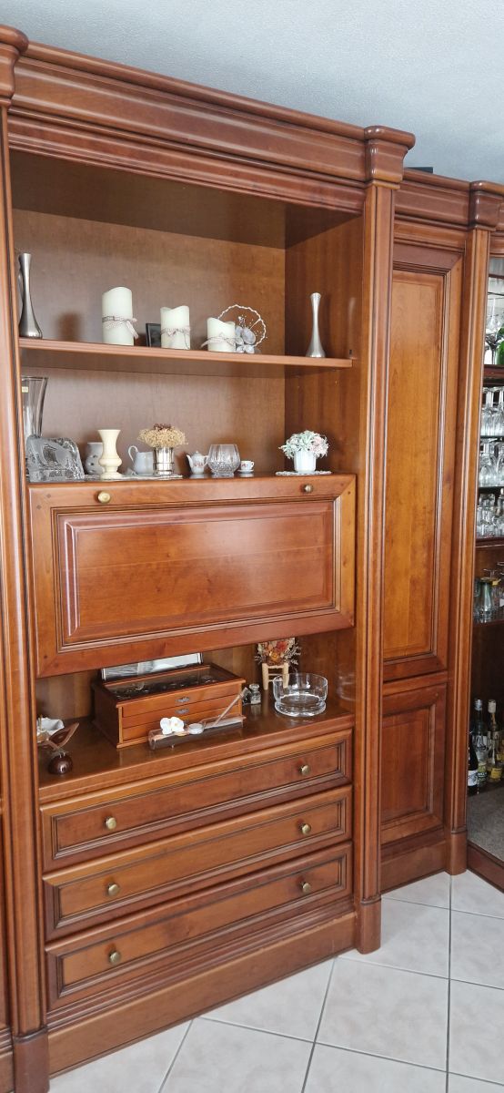 Séjour comprenant un bar d'angle, un meuble de rangement deux portes, un meuble secrétaire, un meuble télé.