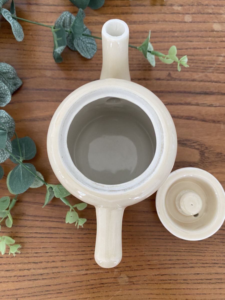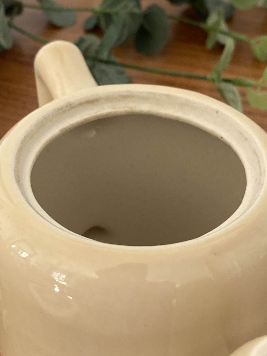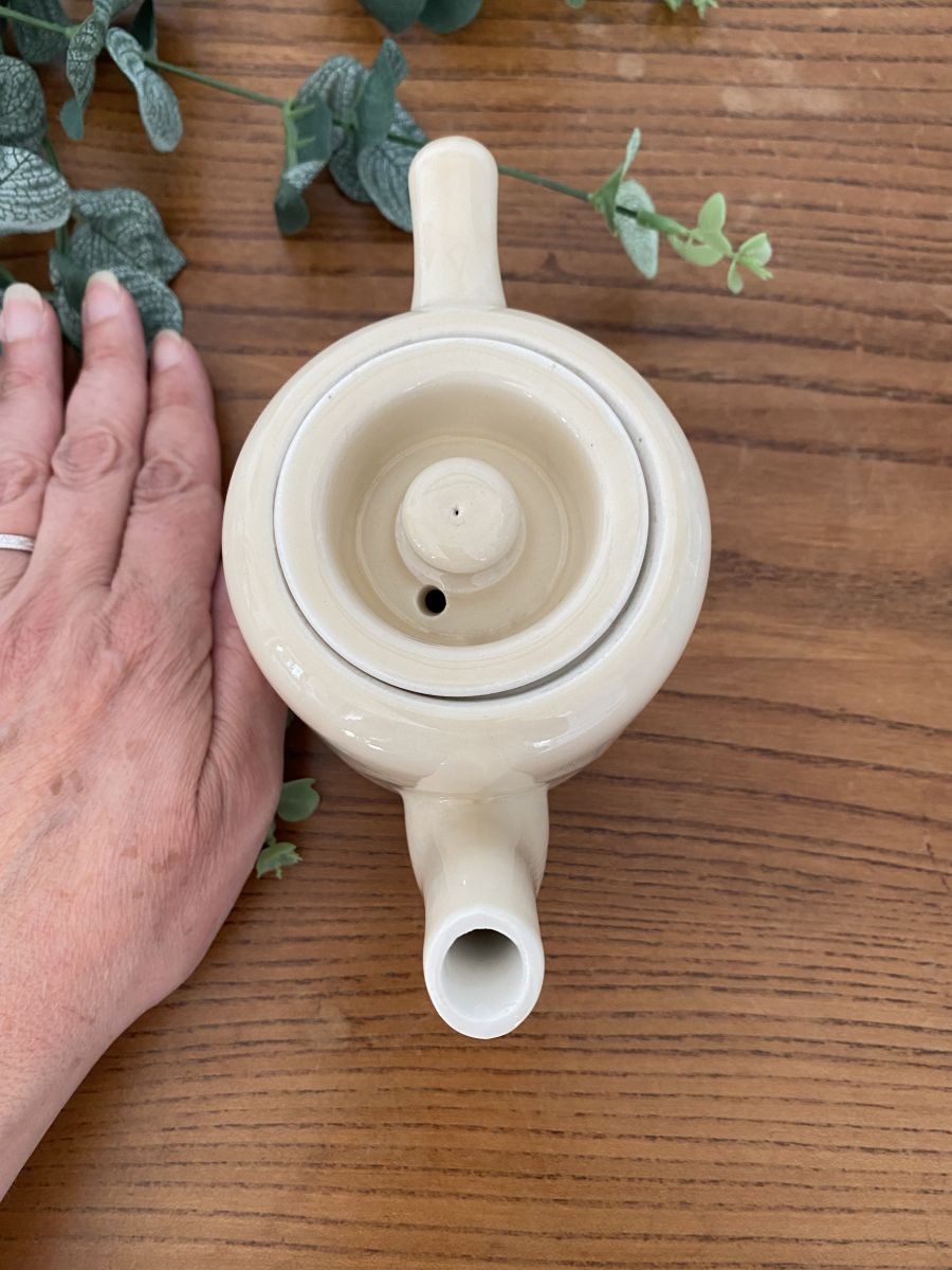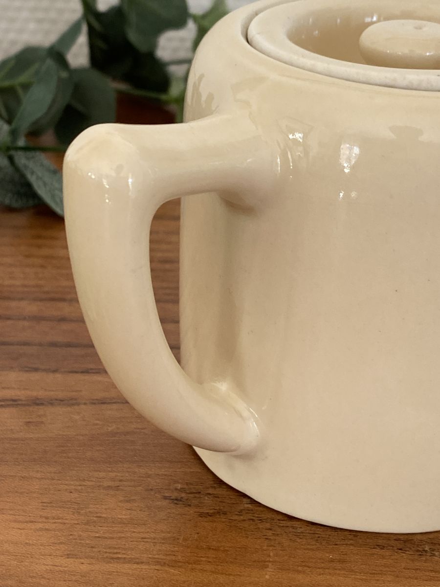 Théière individuelle en faïence, peu courante dans cette couleur beige. Bel état, avec traces d'usage. Dimensions : P 9 cm, L 16,5 cm, H 9 cm. Contenance 30 cl. V1031