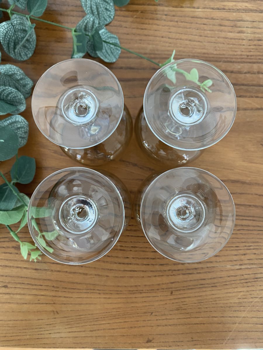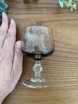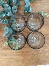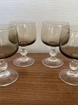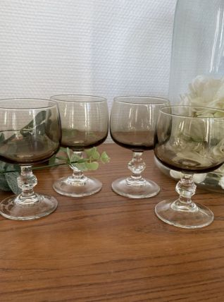Set de 4 verre à vin Luminarc modèle "Domaine", verres à vin en verre fumé et pied transparent. Bel état, diamètre du buvant 6,5 cm, hauteur 10,5 cm. Contenance 10 cl. V1025