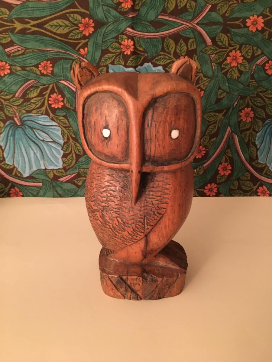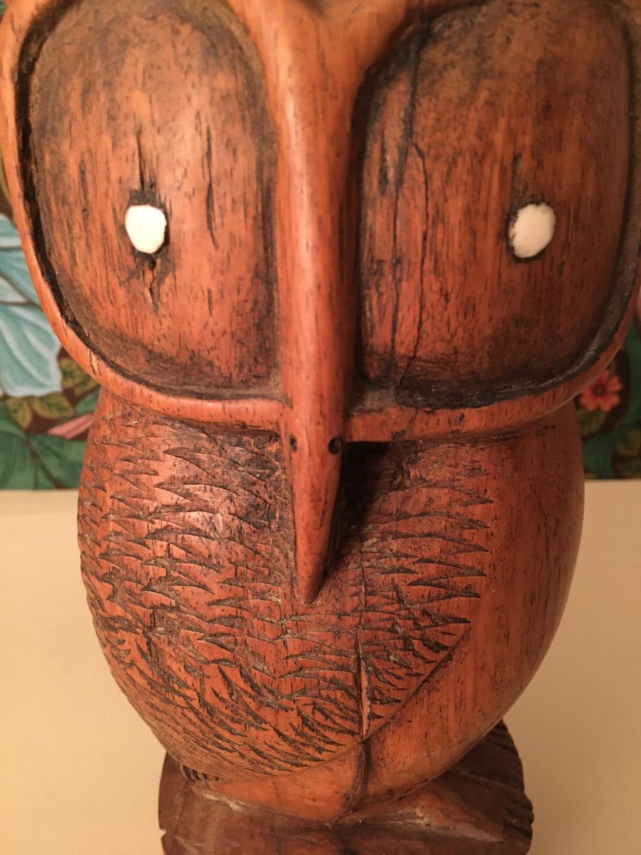 Pour les collectionneurs de hiboux, beau travail d'artisanat d'art, sculpture sur bois plein