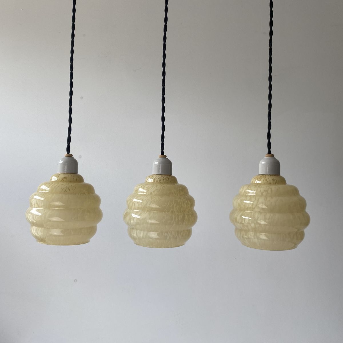 Lot 3 suspensions en verre de Clichy des années 1950 . En très bel état et bel effet de lumière.