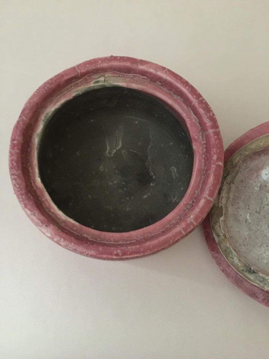 Boîte en céramique raku de couleur vieux rose à l’extérieur