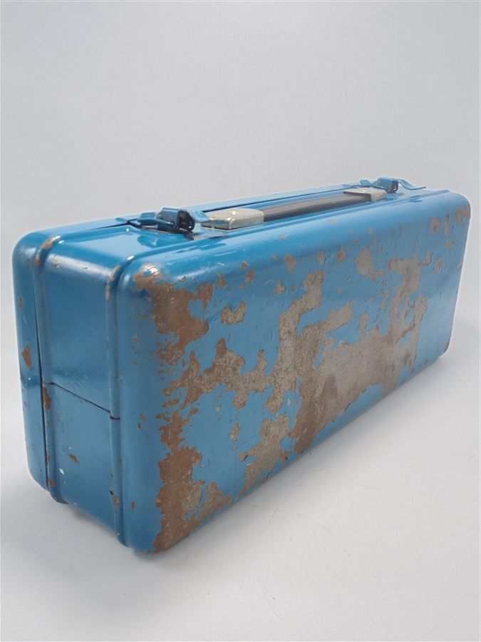 Boîte à outils en métal de couleur bleu .