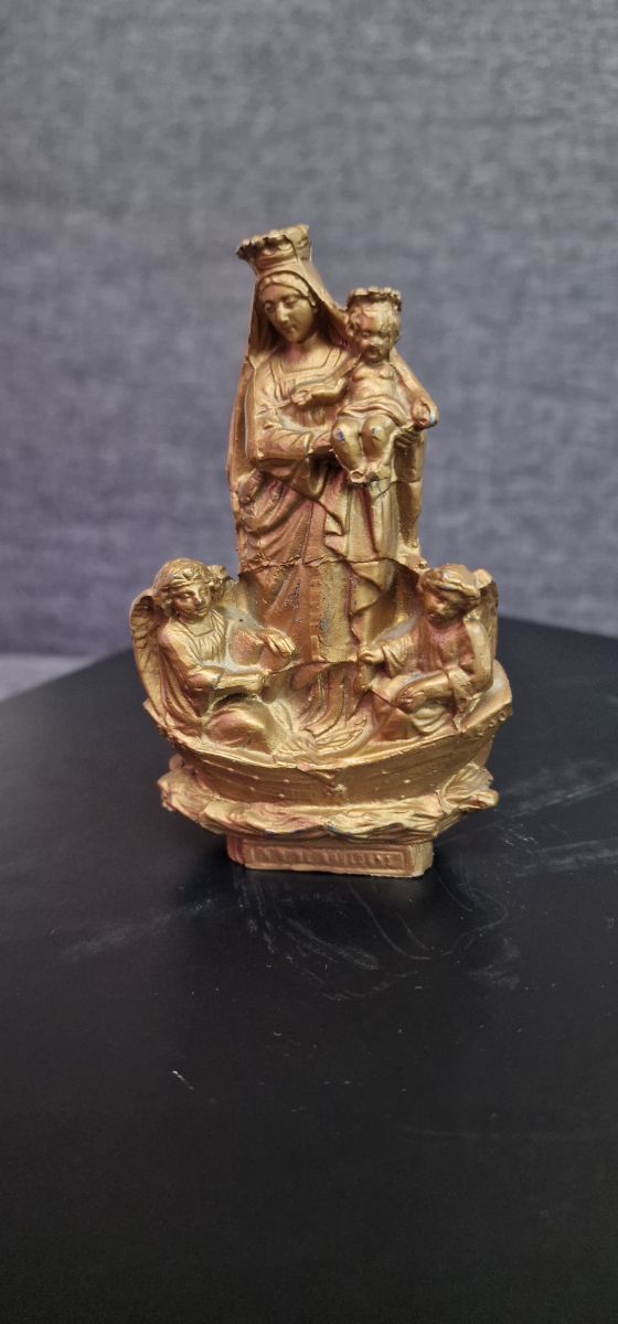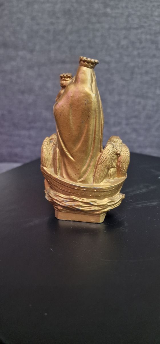 Vierge en métal moulé, teinté doré (ce n'est pas du laiton).