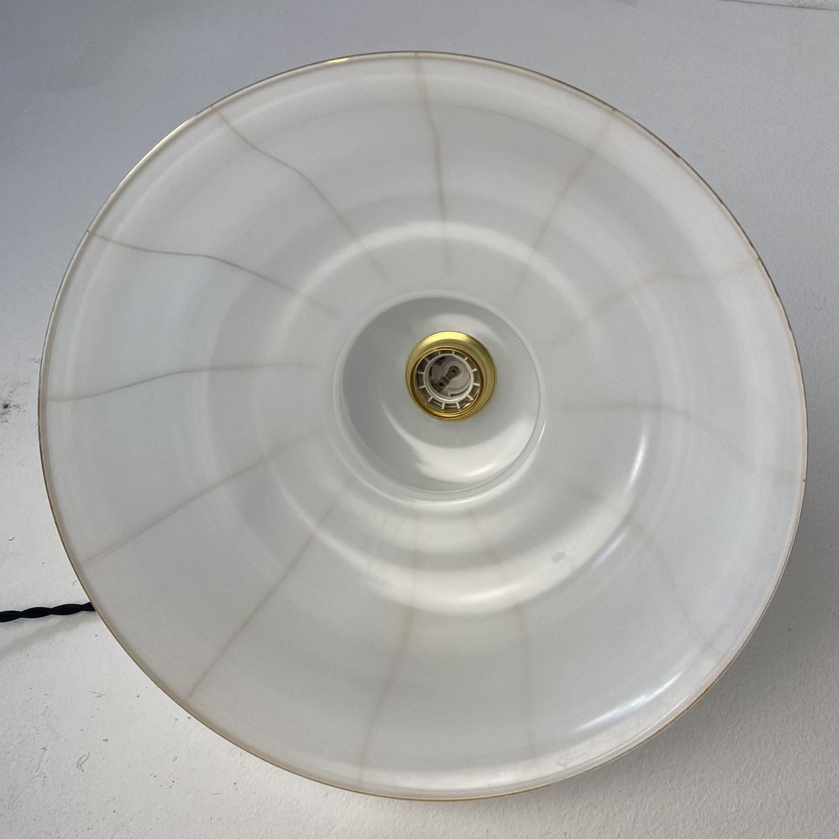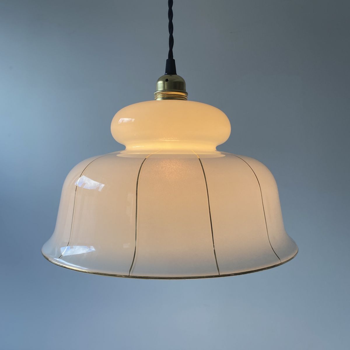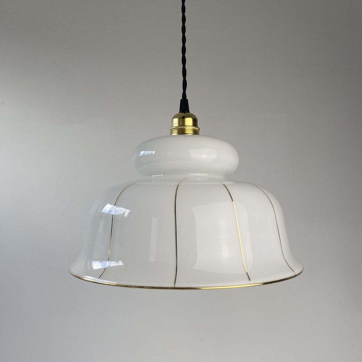 Suspension en verre avec liserés dorés. Années 1970. Très belle lumière.