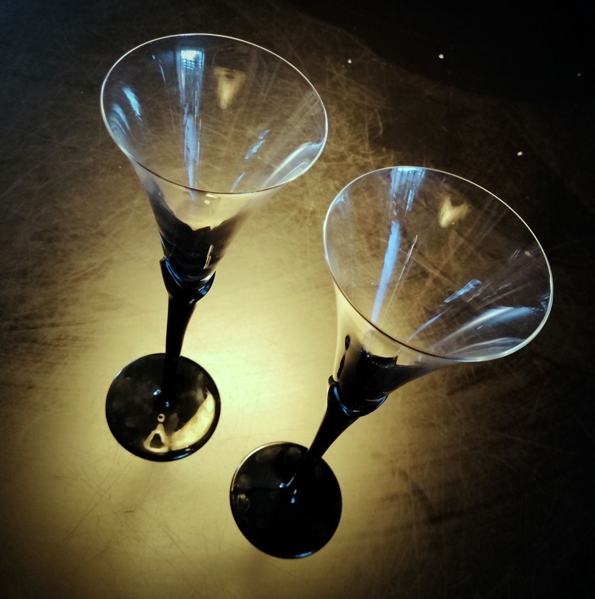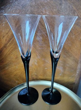 Ensemble de deux coupes vintage en cristal transparent et noir de Christinenhutte (Allemagne).