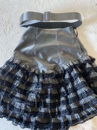 jupe Madrid vintage argentée et noire avec volant taille 34