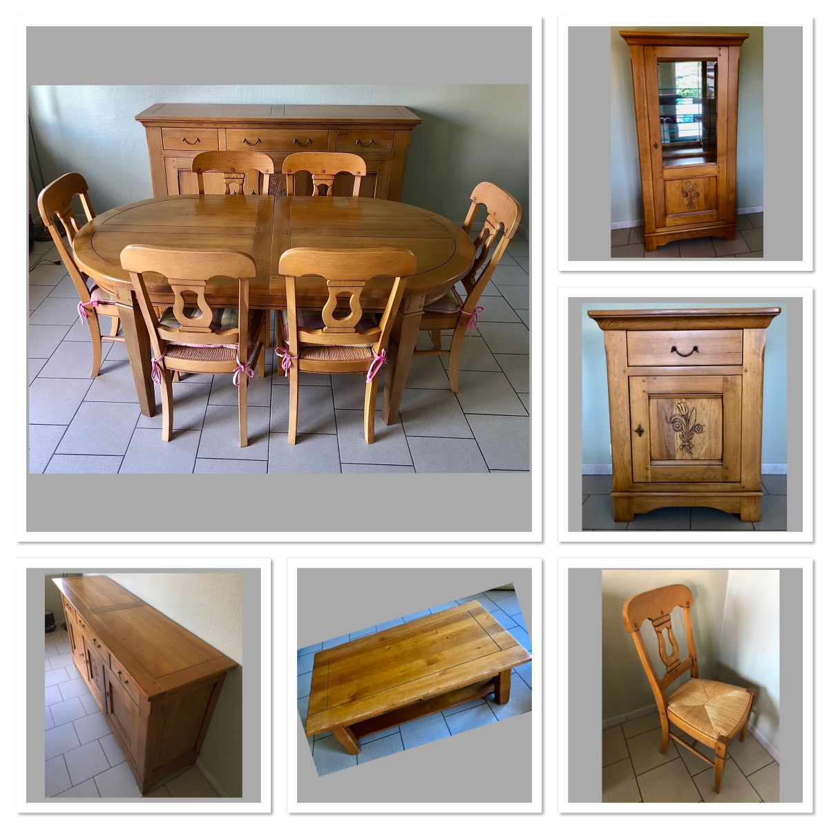 Salle à manger style campagnard Artimeuble. Chêne massif doré finition vernis cellulosique.