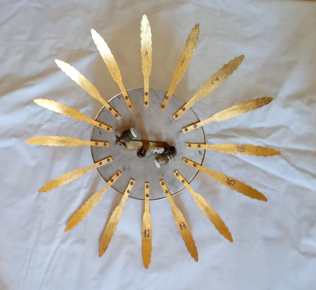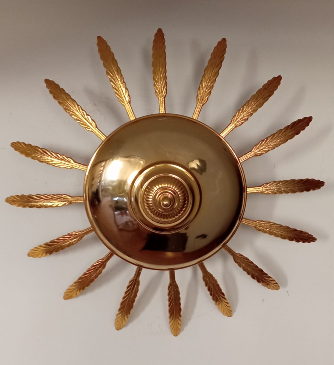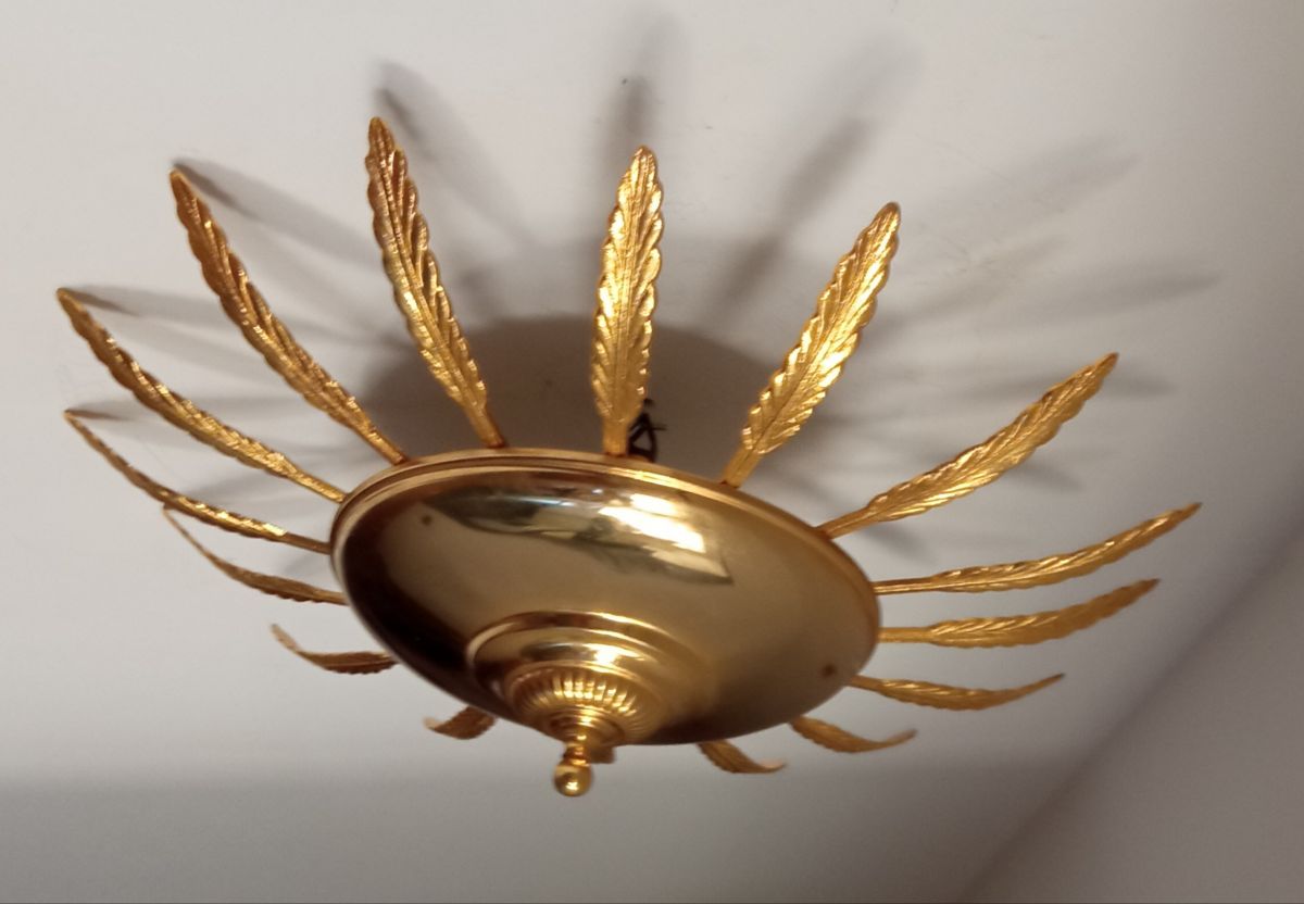 Marque : Plafonnier en métal doré. Système électrique d'origine.