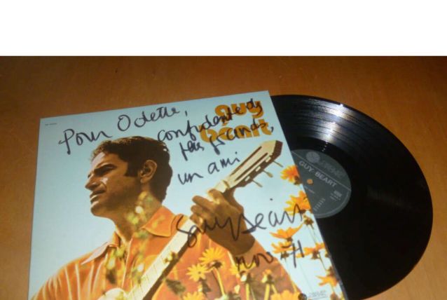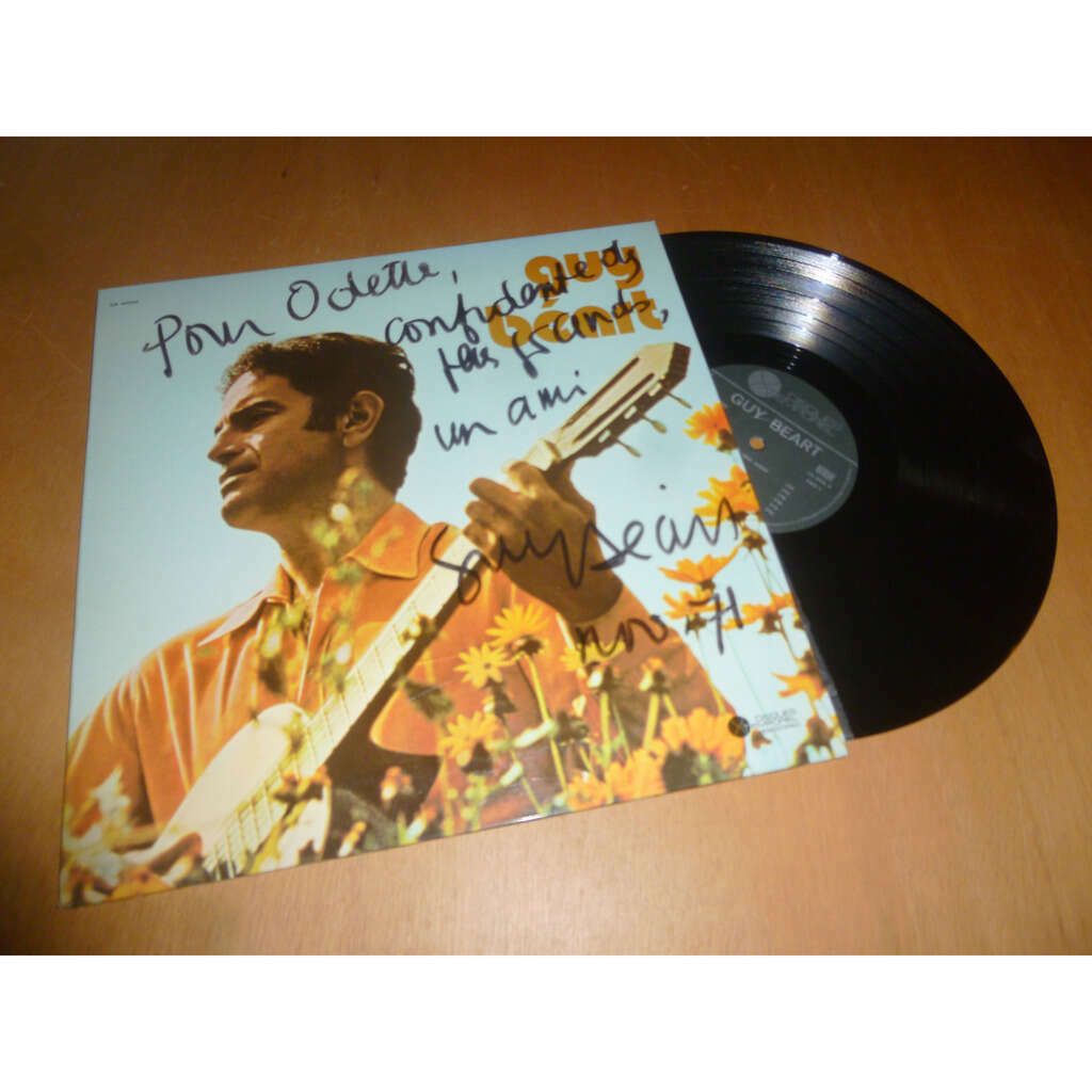 avec une dédicace en face avant de la pochette ..: " pour odette, confidente des plus grands, un ami - guy beart nov.71 "
