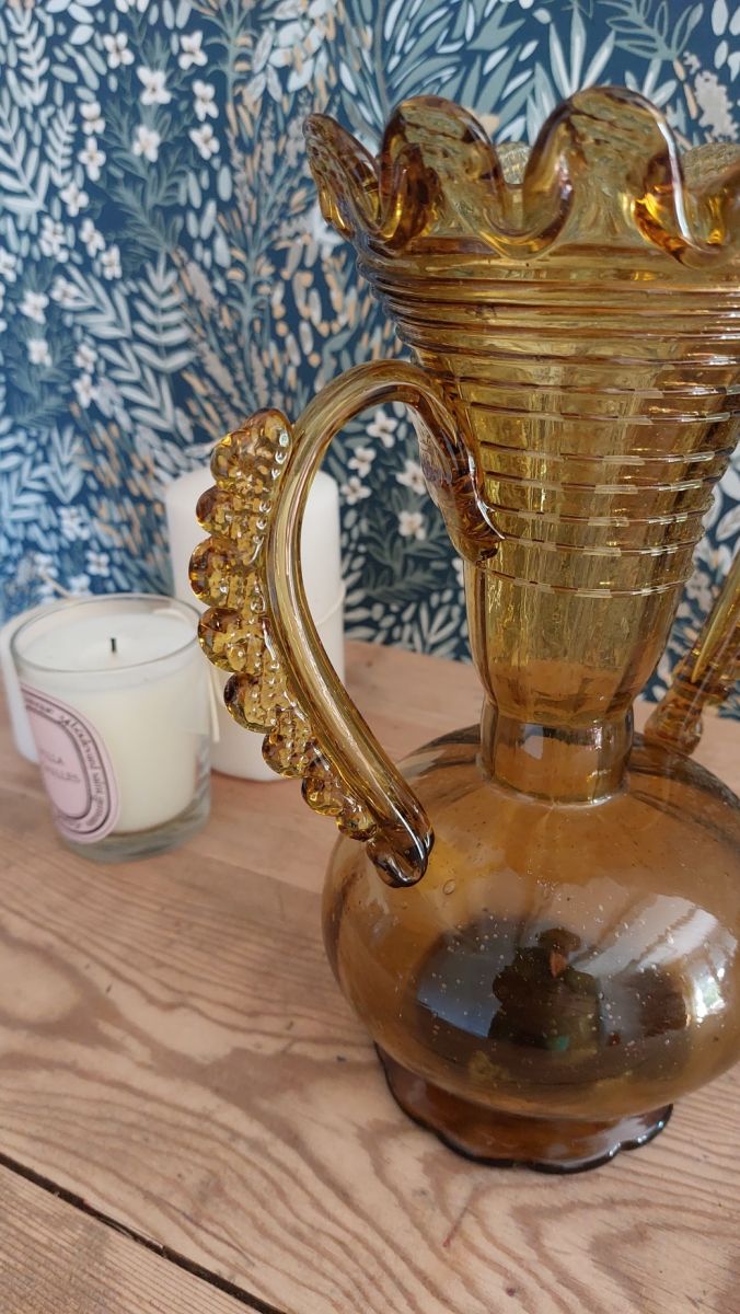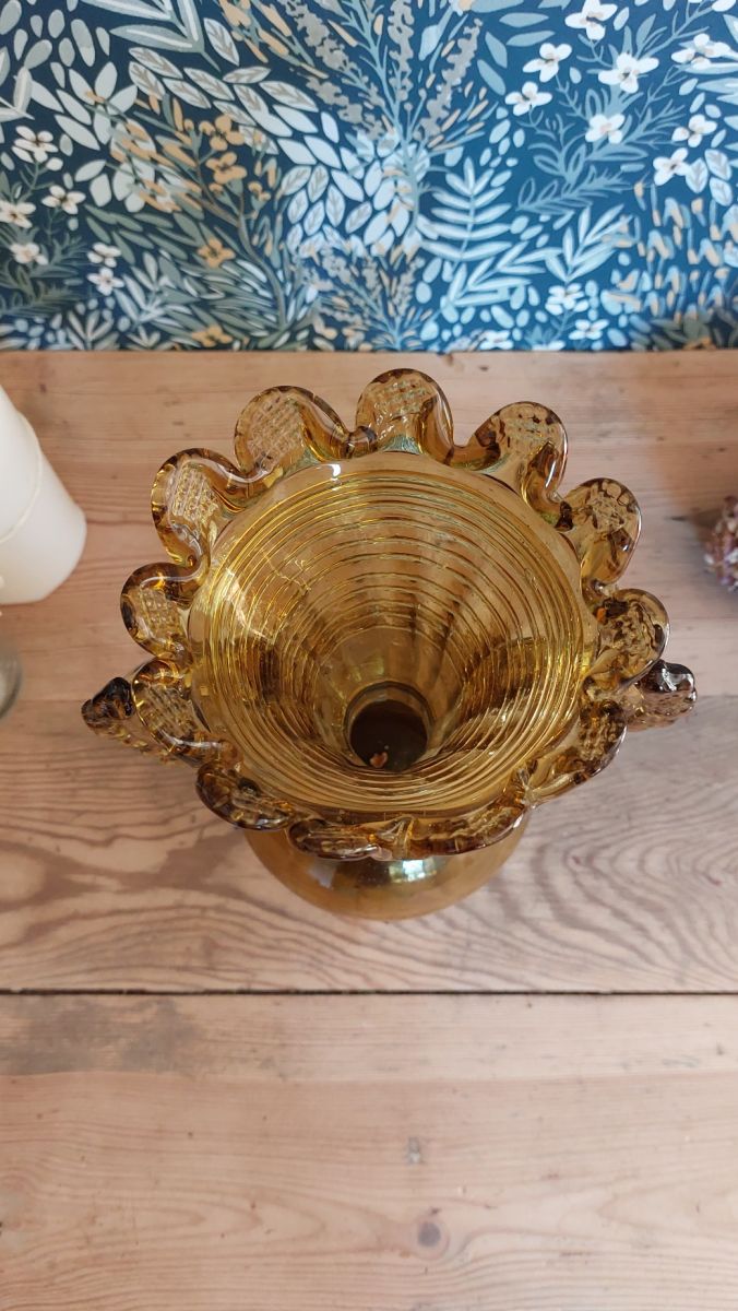 Beau vase vintage en verre soufflé Gordiola de couleur ambré.