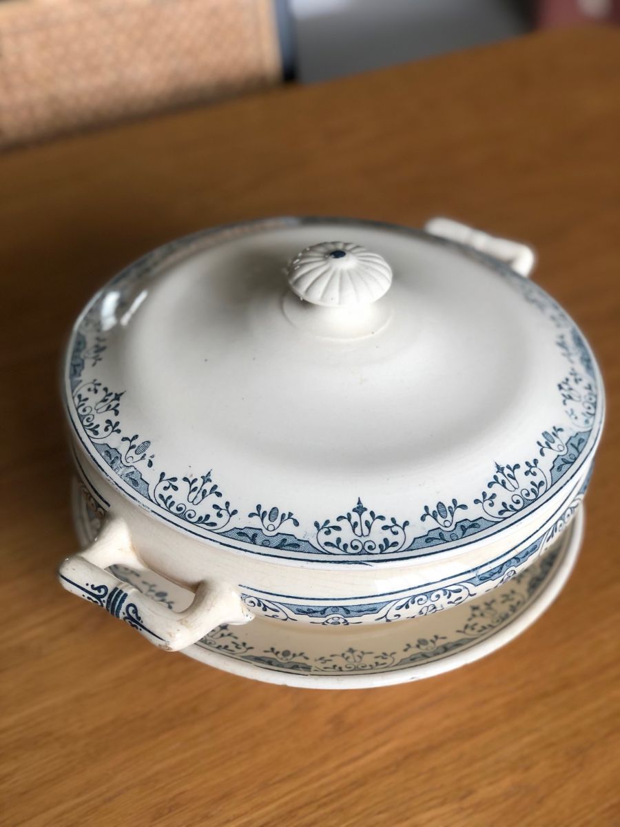 Soupière Faïence Longchamp & plat de service - modèle Doria