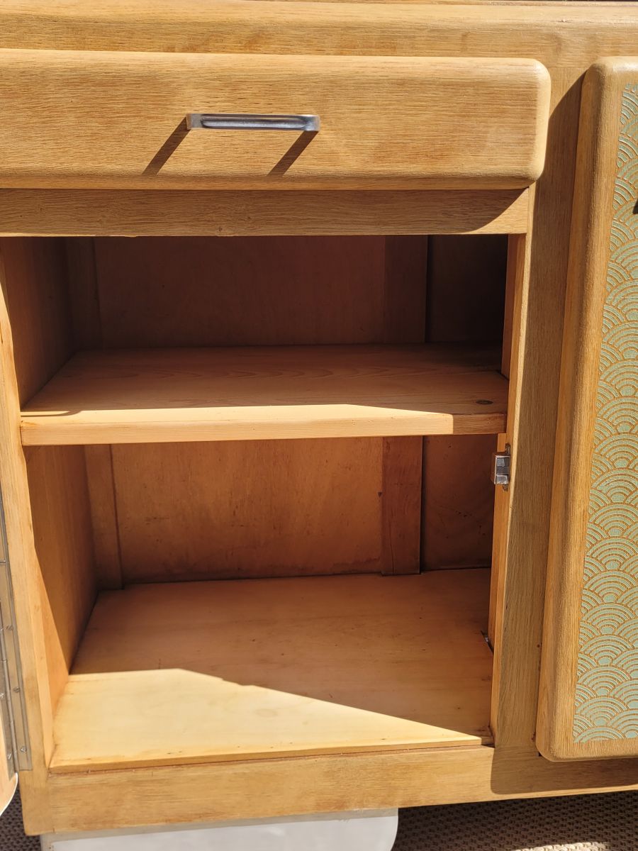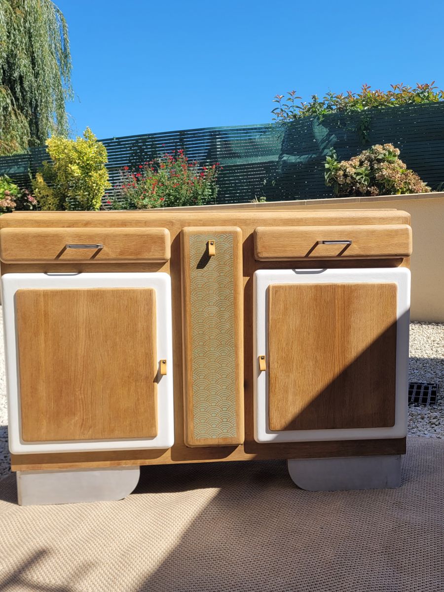 Buffet mado restauré dans des tons vert et bois
