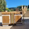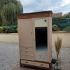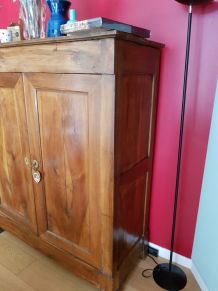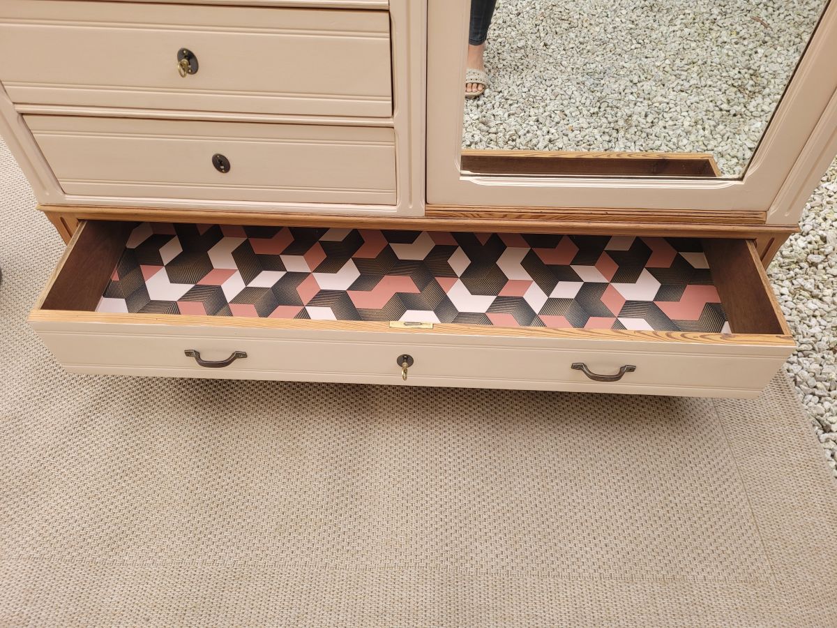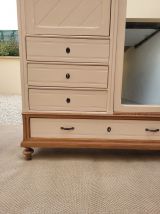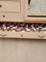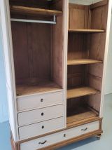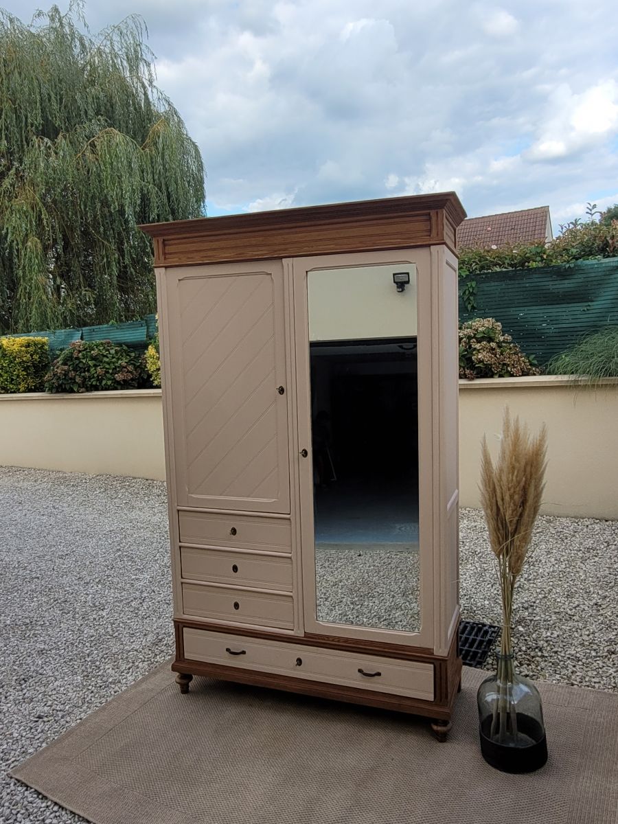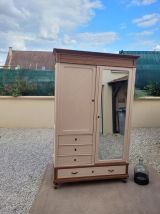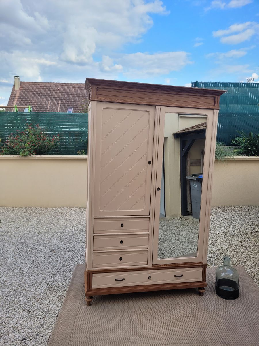 Armoire parisienne restaurée bois vernis et meuble peint avec un joli rose tendre