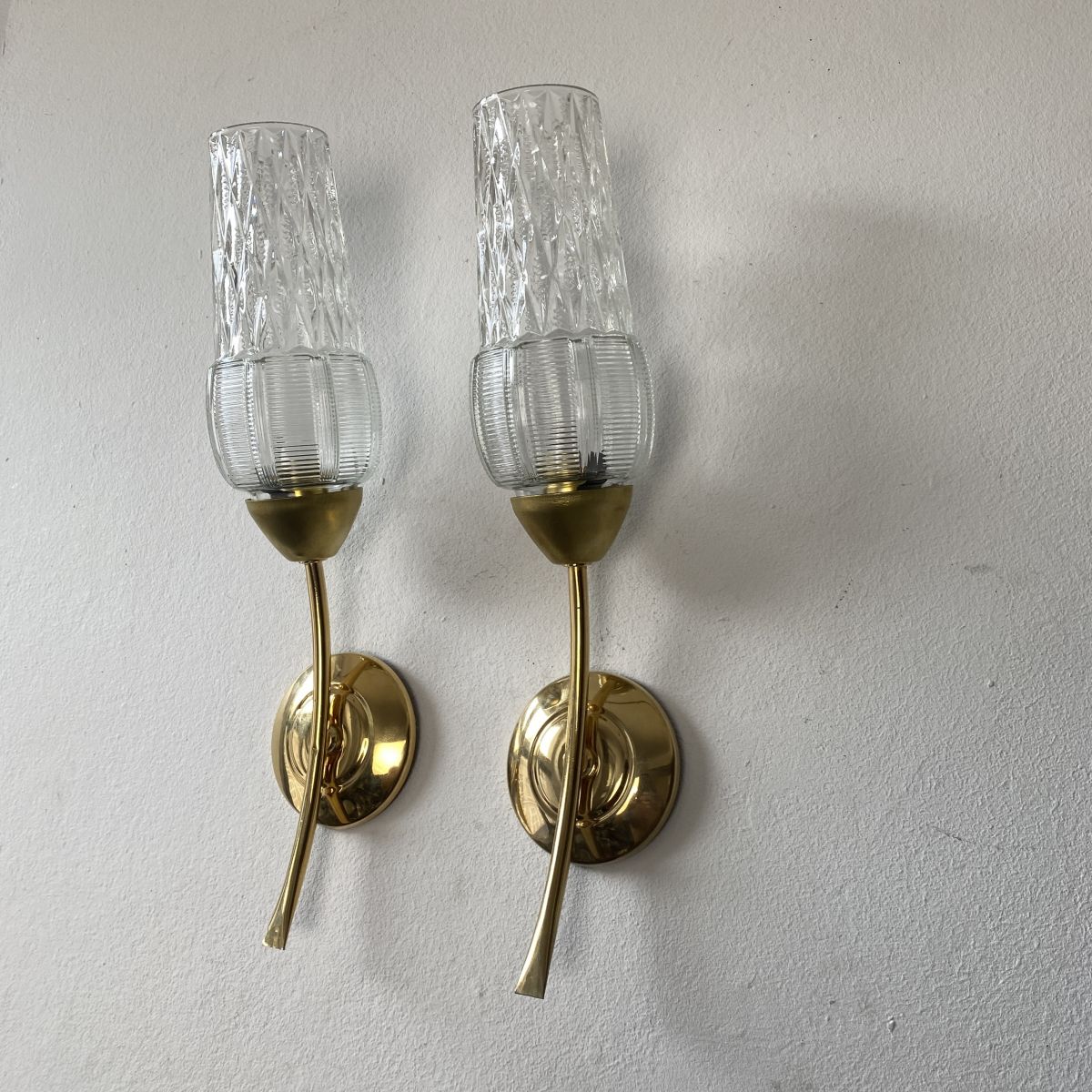 2 appliques vintage en laiton et abat-jour en verre. En très bel état.