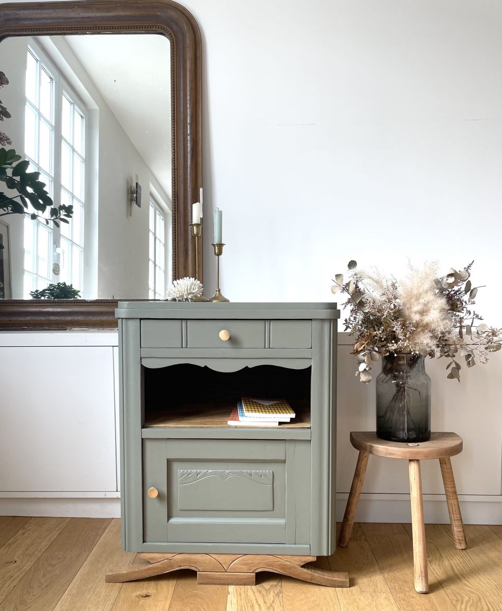 Élégant chevet ou meuble d'appoint des années 30 avec un joli pied moustache.