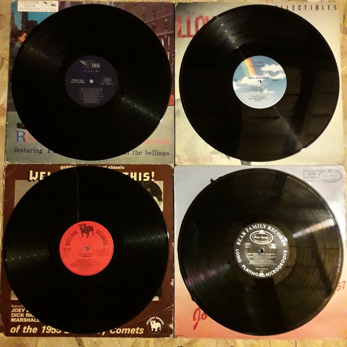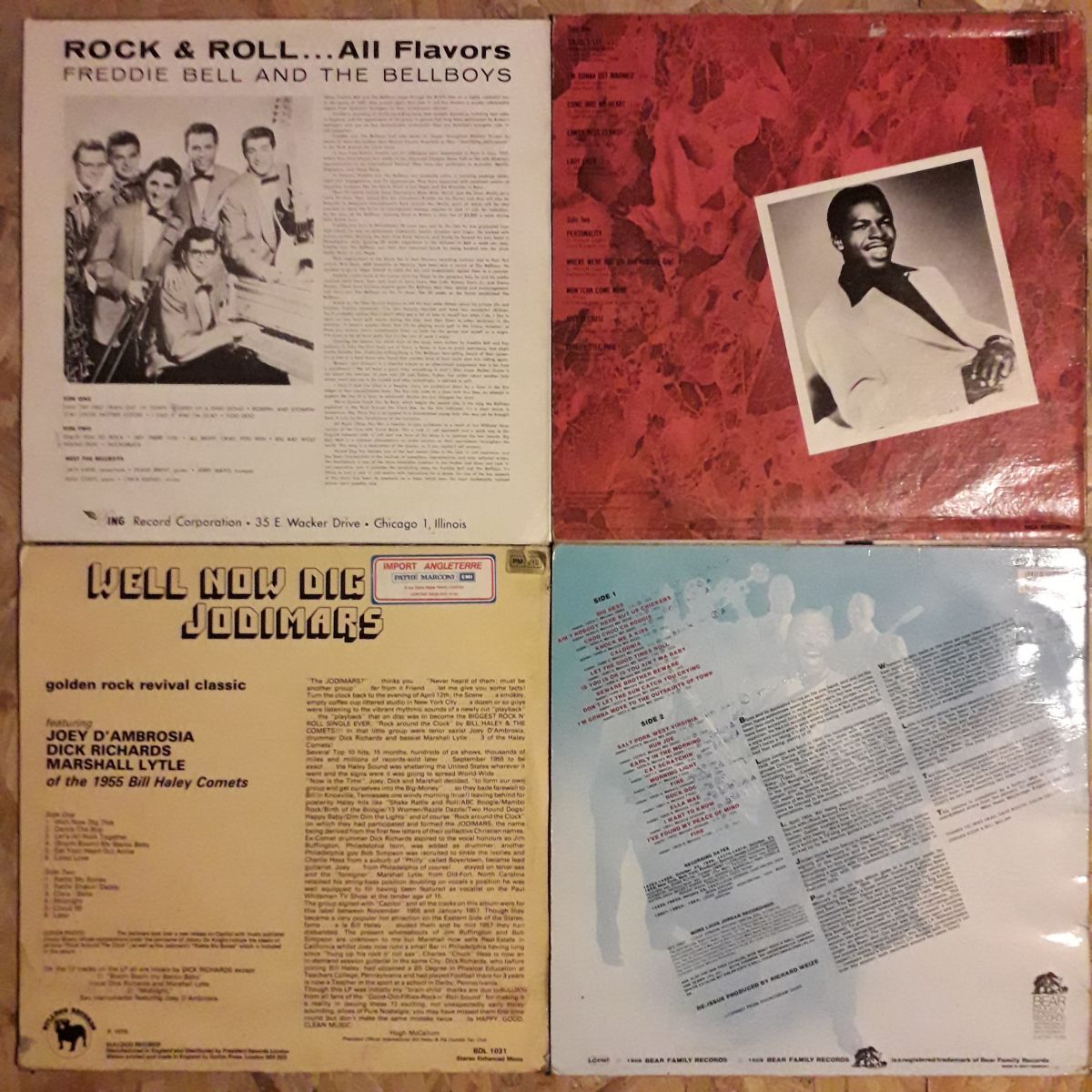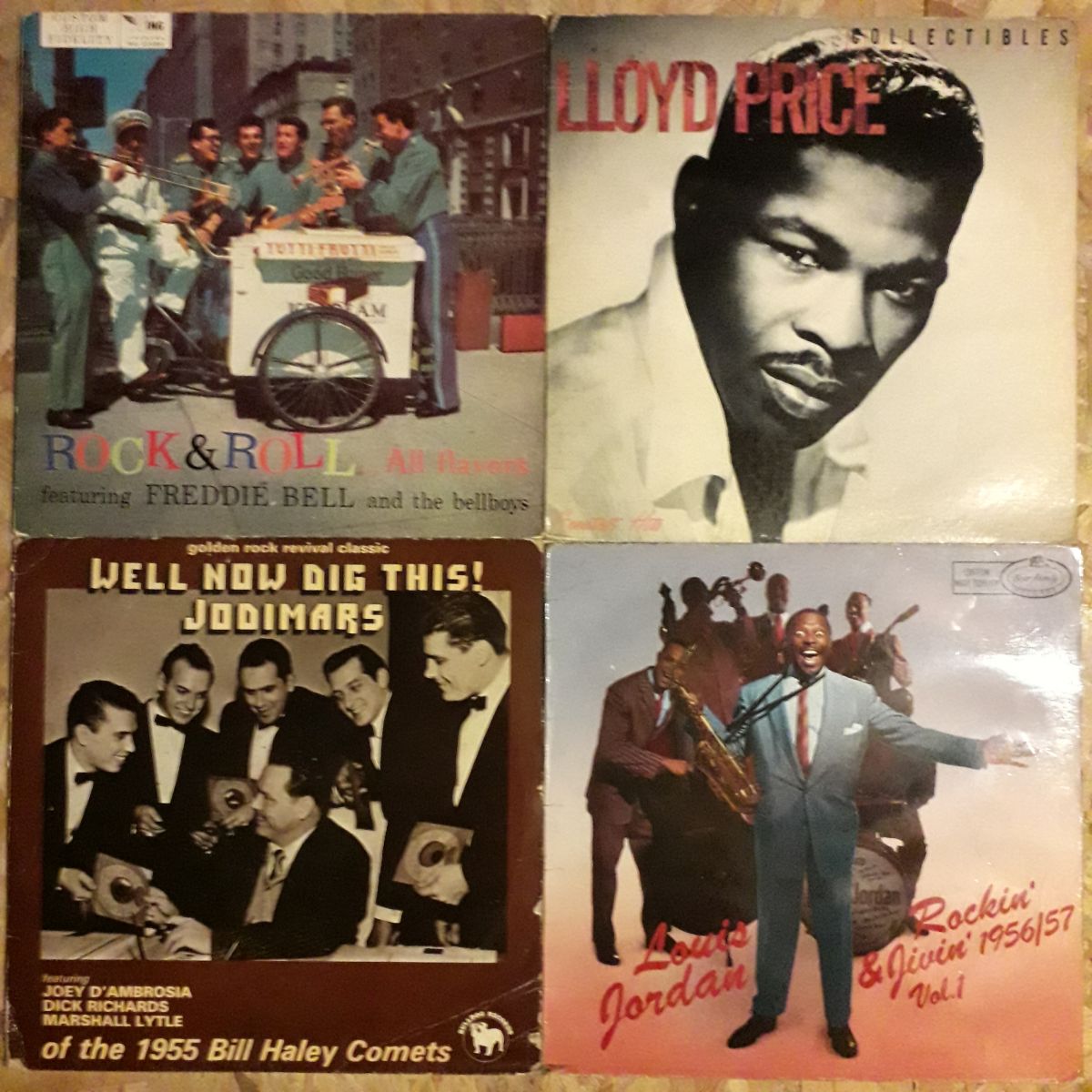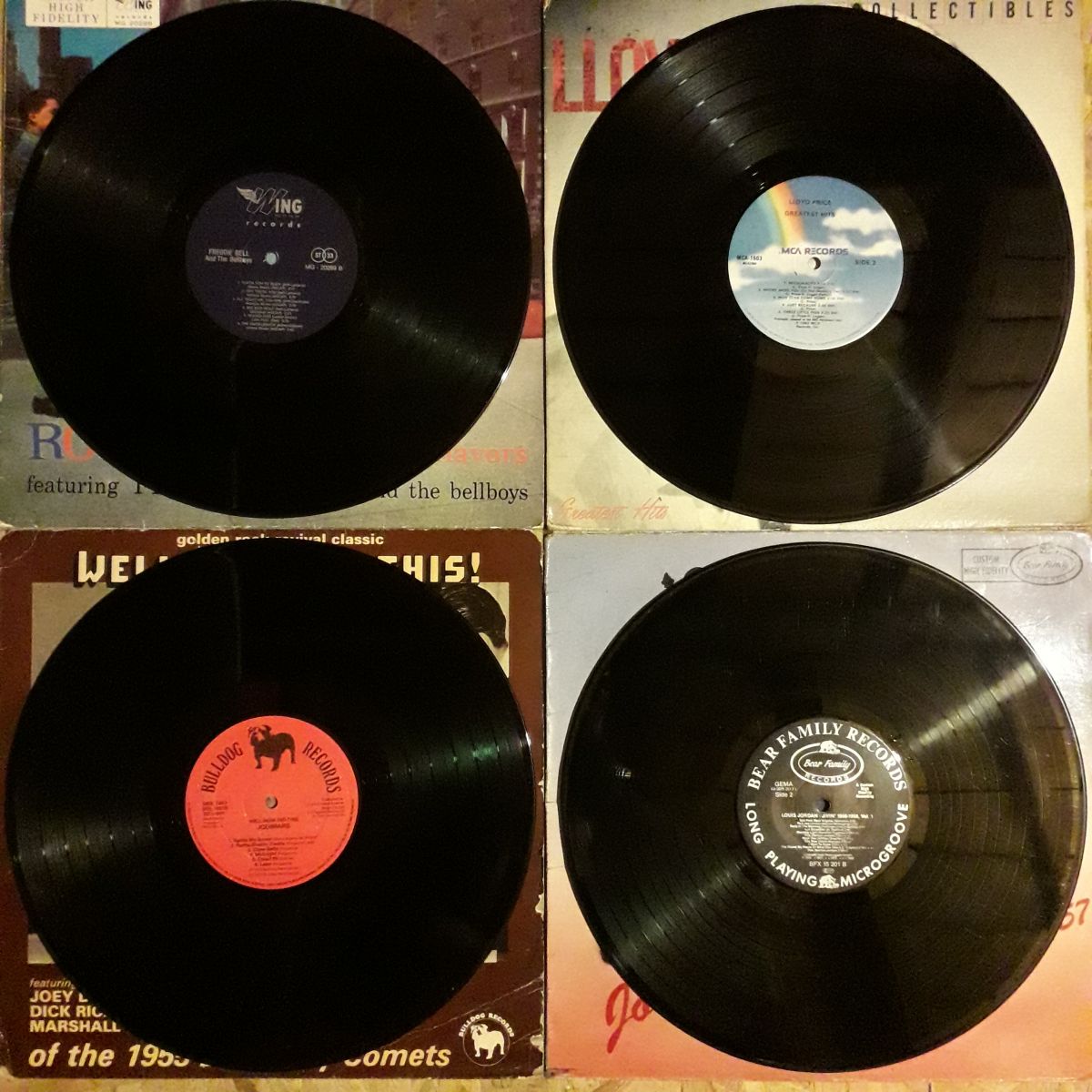 Bonjour à tous je mets en vente un lot de quatre vinyles 33t Rock'n'Roll 50s Doo Wop, Jump à 40€ le lot possibilité de prendre à l'unité à 10€ pièce vinyles en bon état et nettoyés et pochettes certaines usée par le temps voir photos pour plus de renseignements laissez moi un message merci cordialement