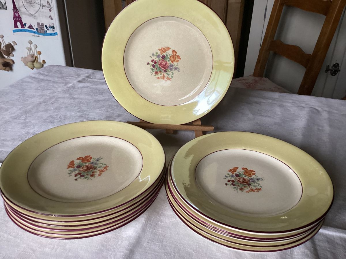 12 assiettes à fromage ou dessert diamètre 17,5 cm signé Labrut céramique de Grigny