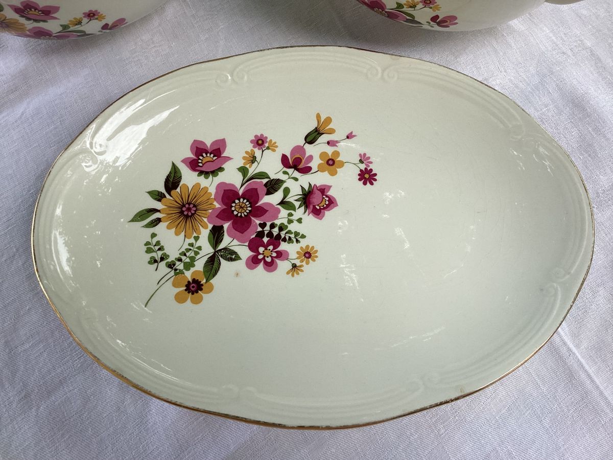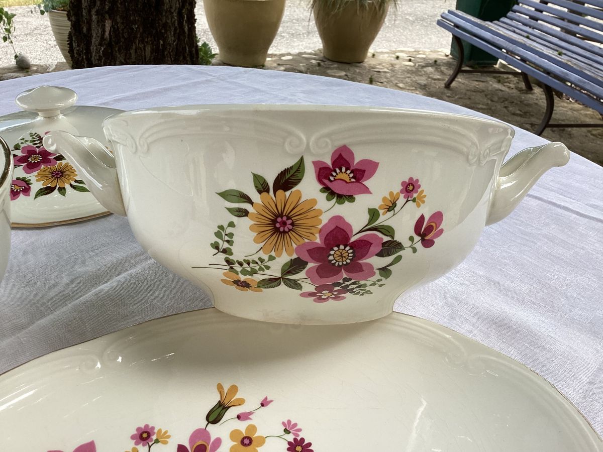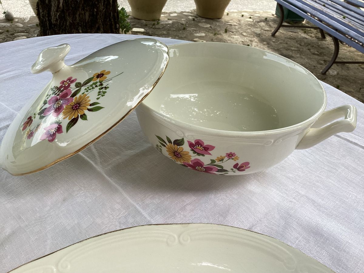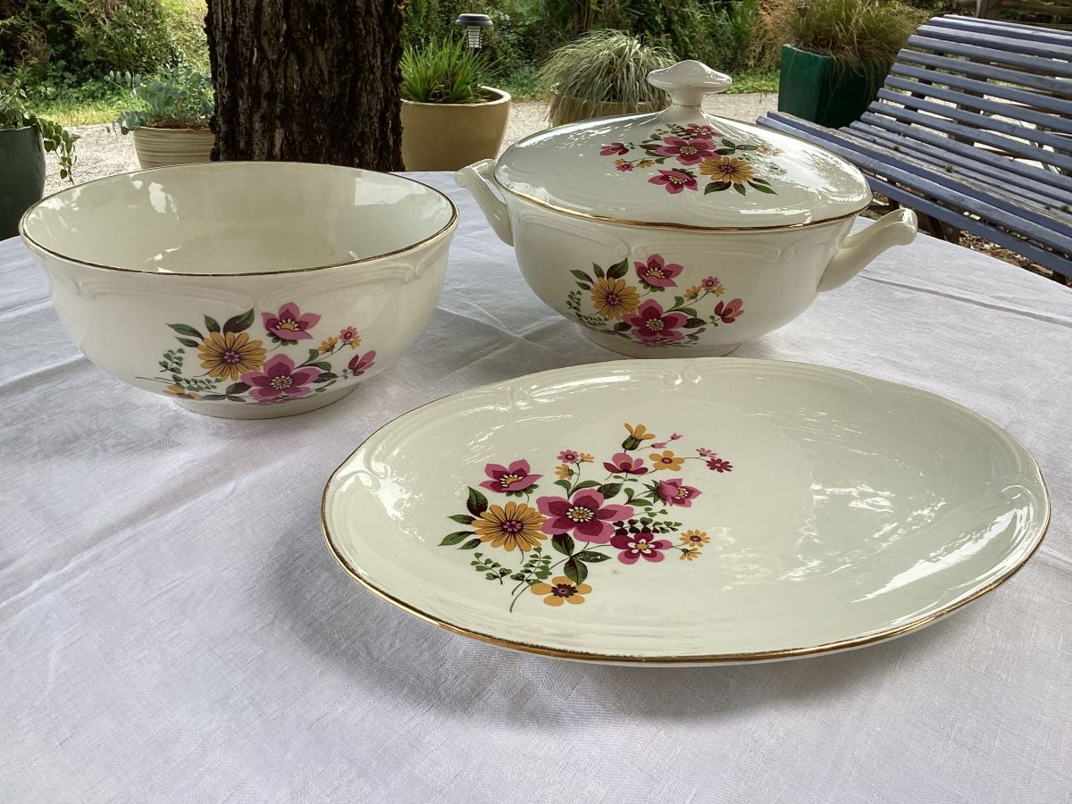 1 saladier 1 légumier 1 plat de service ovale faïence de Gien décor de fleurs champêtres très bon état