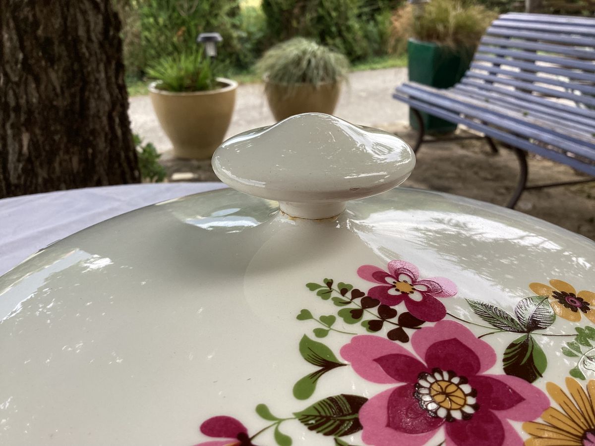 La poignée du couvercle du légumier a été cassée et recoller visible sur la photo