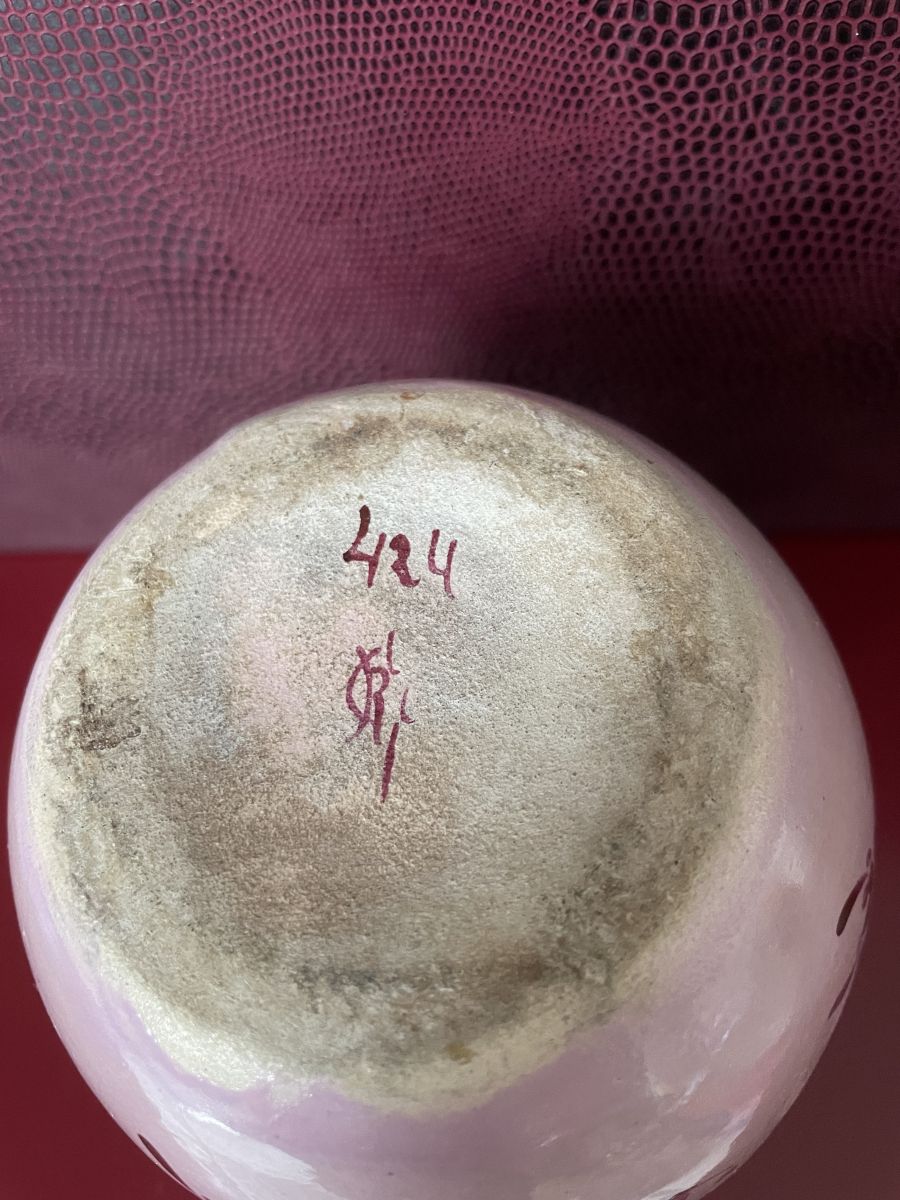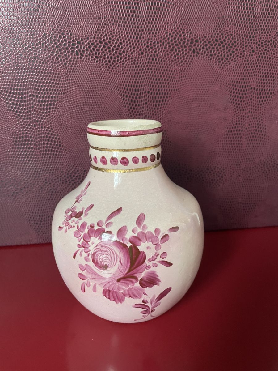 Petit vase boule rose signé Roger Colas Faïence de Clamecy (1950) hauteur 13 cm poids 352 grs. Excellent état. PRIX FERME