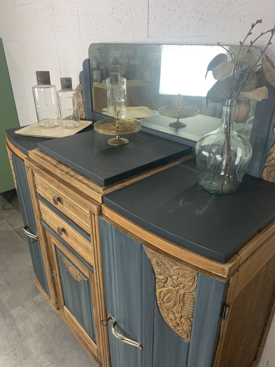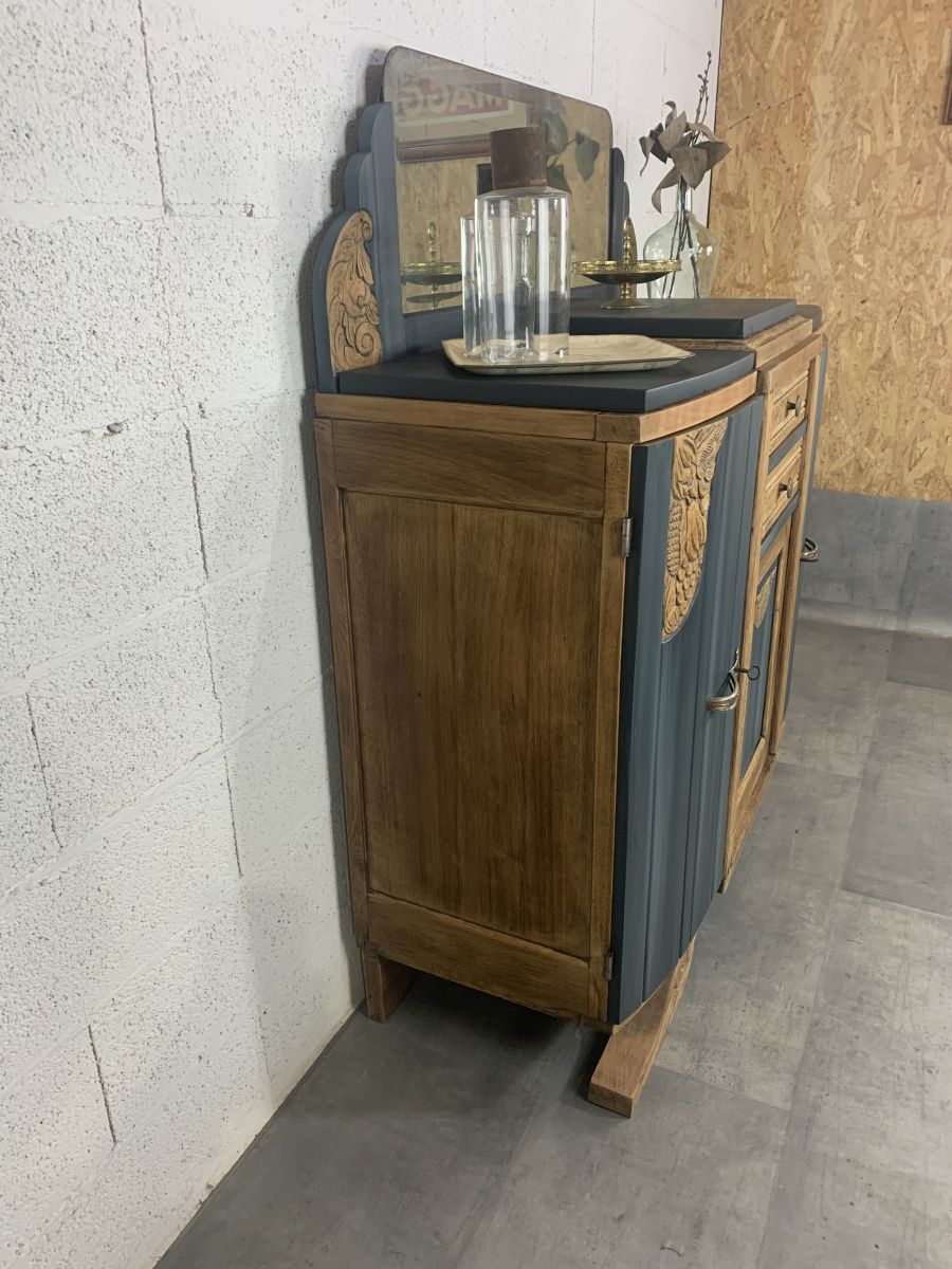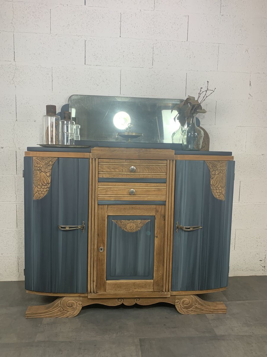 Joli buffet éventail époque Art Déco en chêne massif vers 1920-1930.
