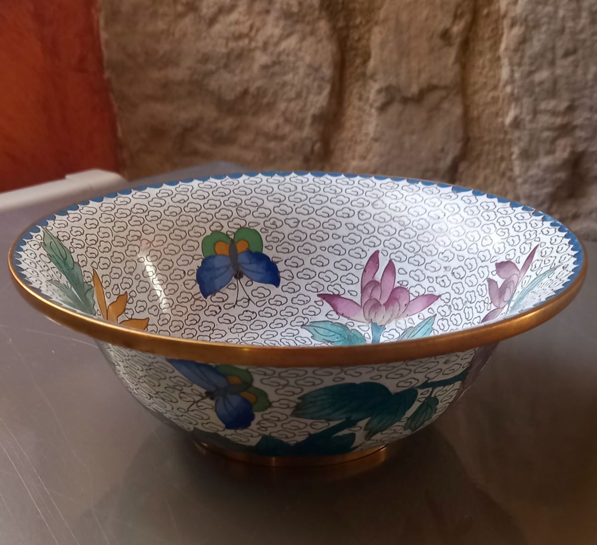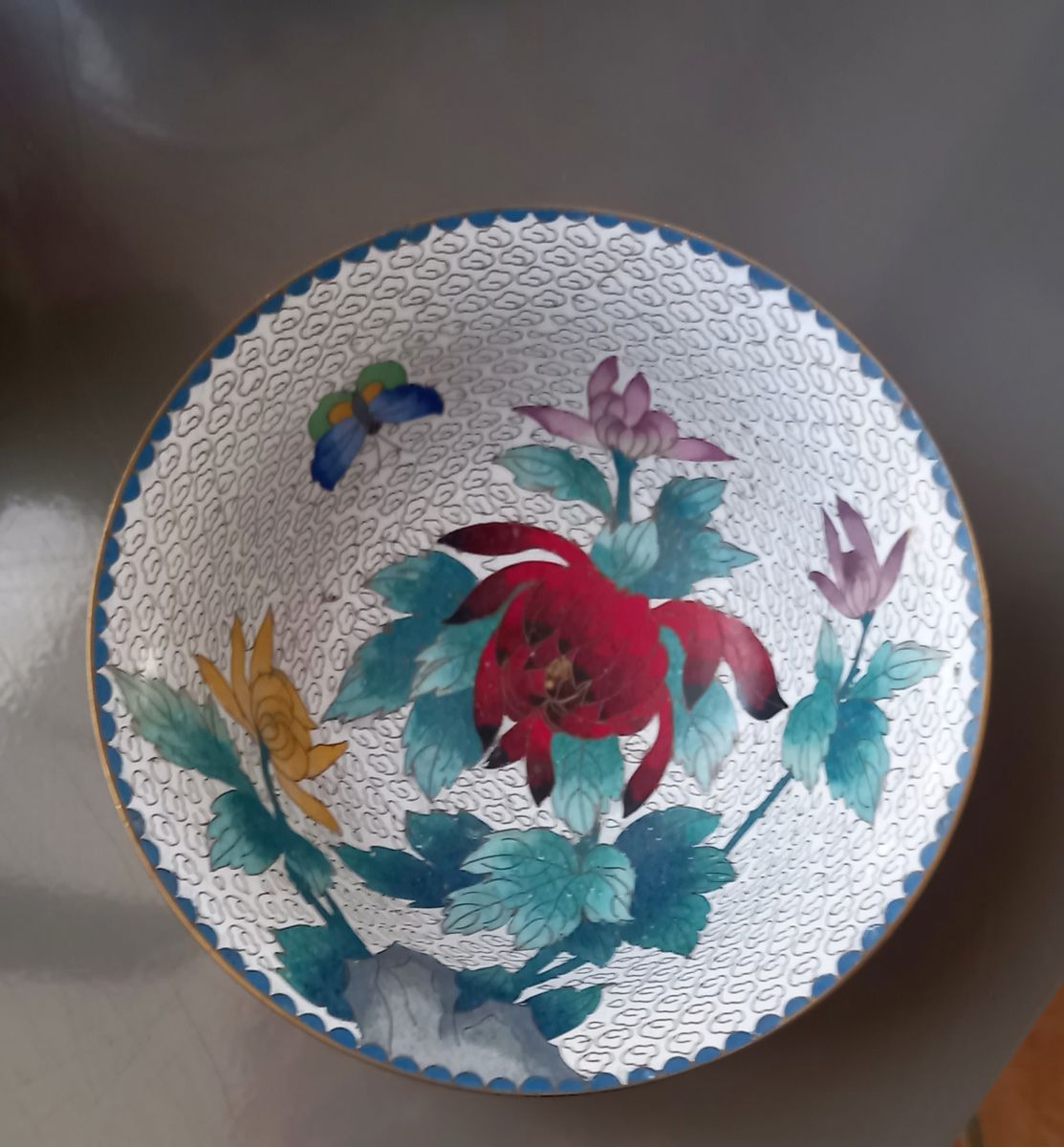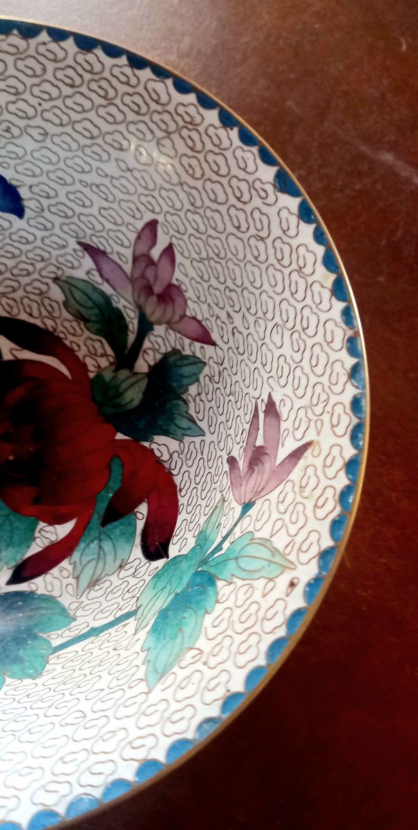 Coupelle en cloisonné asiatique avec magnifique décor floral.