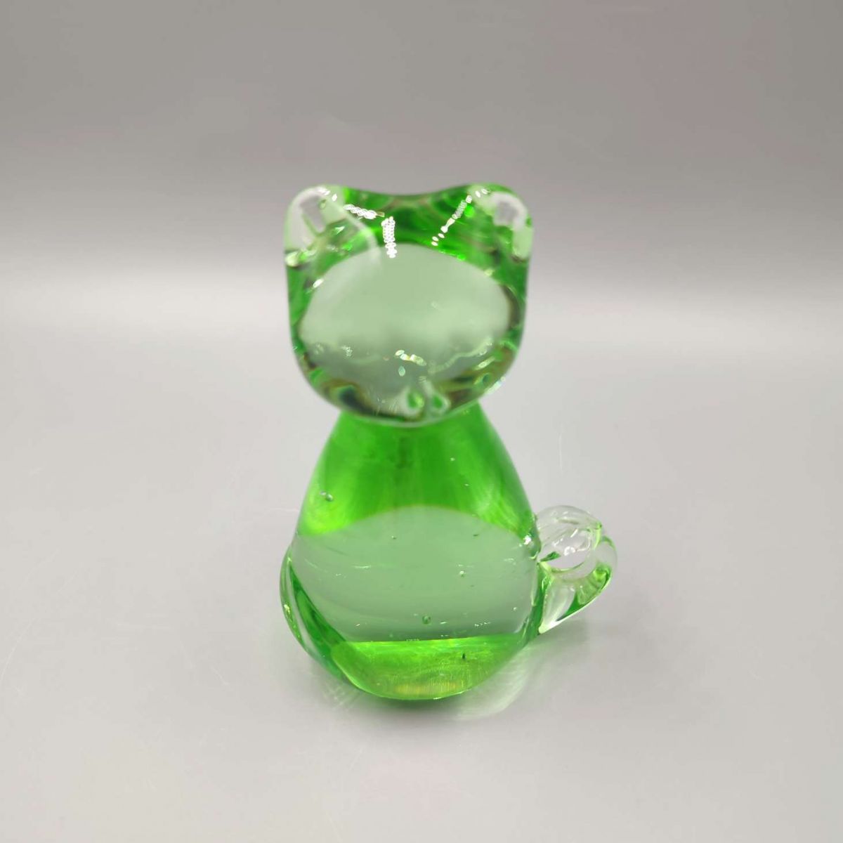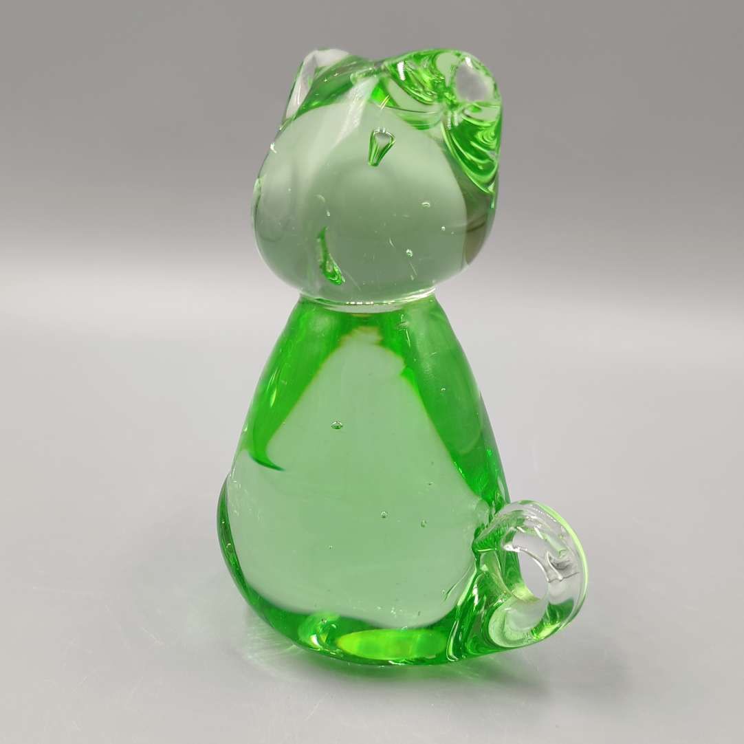 Très joli petit chat en verre soufflé vert sans signature datant des années 80.
