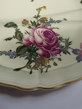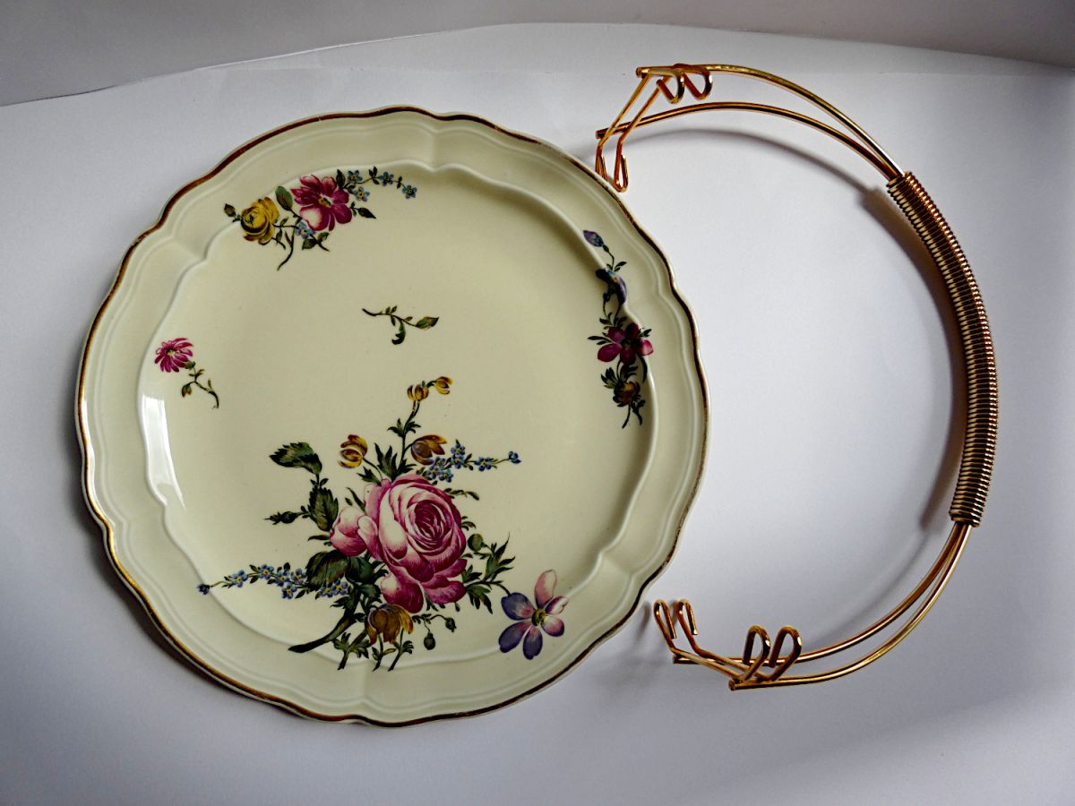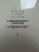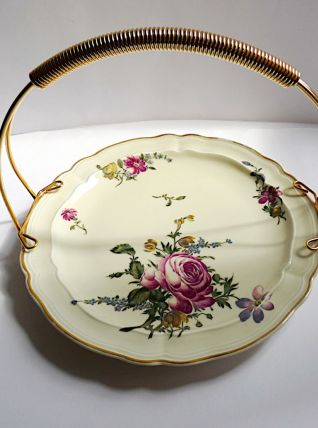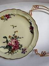 Assiette de présentation avec anse en métal doré, en porcelaine de limoges, à fond grège, signée au dos. b & c limoges france - l.bernardaud & cie. Modèle "strasbourg" années 1950/1970. Pour présenter des mignardises, macarons, petits fours... En parfait état, vraiment superbe, couleurs très fraîches, aucun fêle, aucun manque, la anse est aussi en parfait état, aucun signe de vieillisement. La anse peut s'enlever. Dimensions et poids: l'assiette fait 25 cm de diamètre, son poids sans la anse est de 534 g et 700 g avec. Très jolie pièce qui sera du plus bel effet sur votre table. Tarifs envoi pour la France, Pour l'étranger merci de me contacter avant l'achat, merci.Envoi très sécurisé.