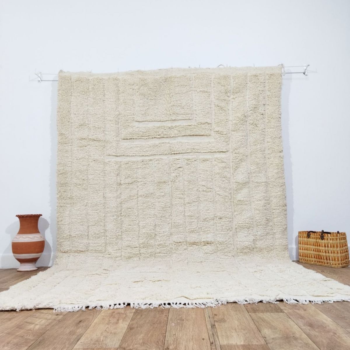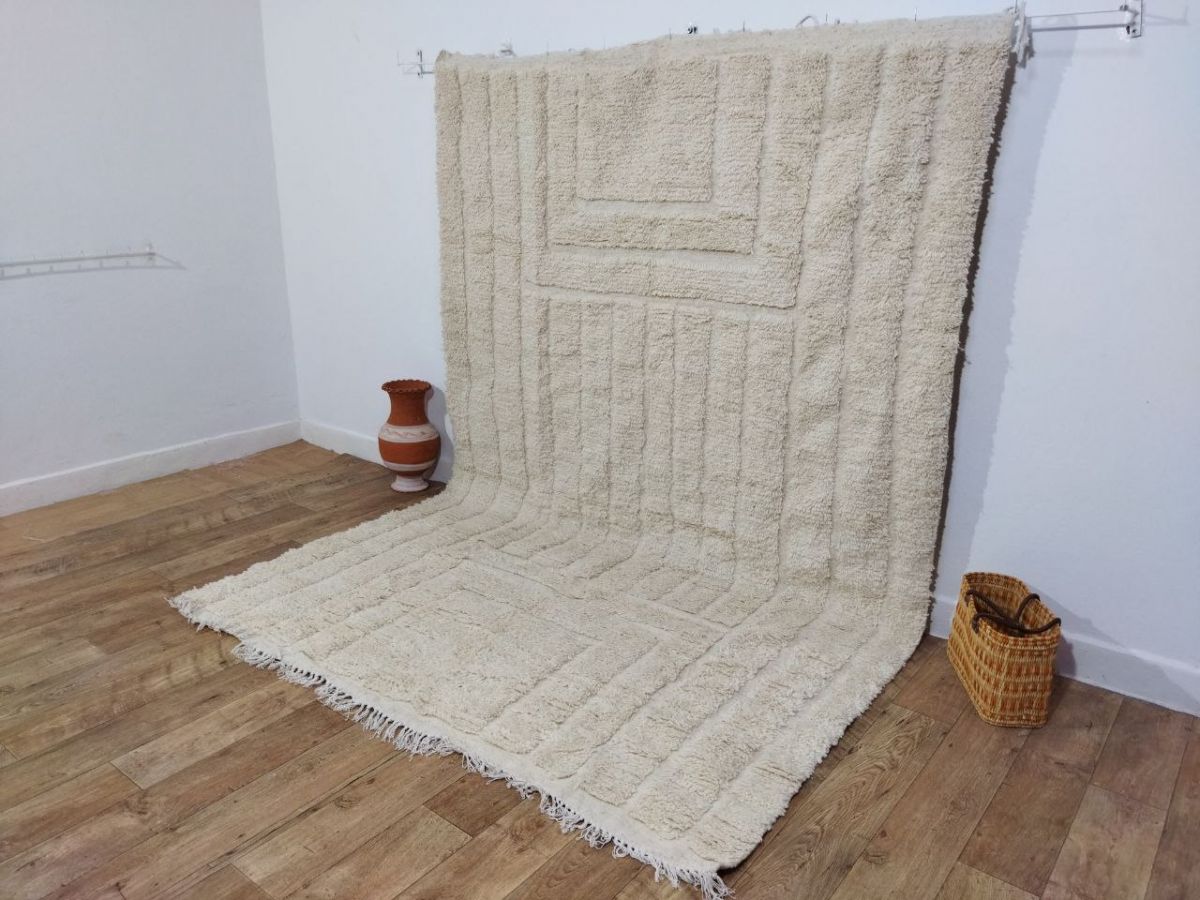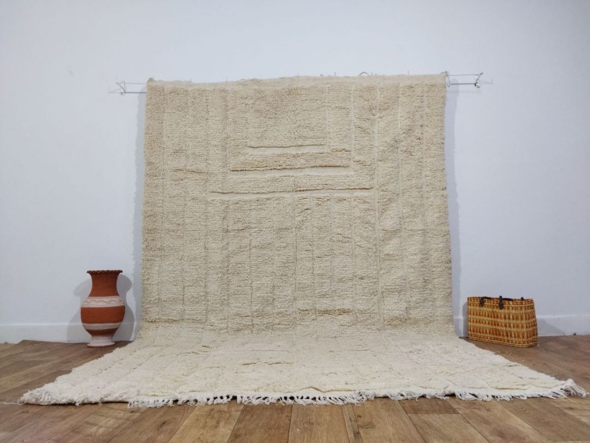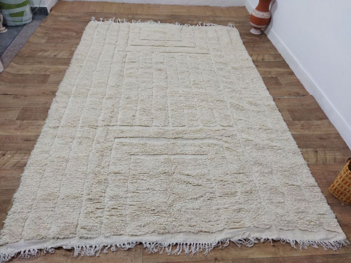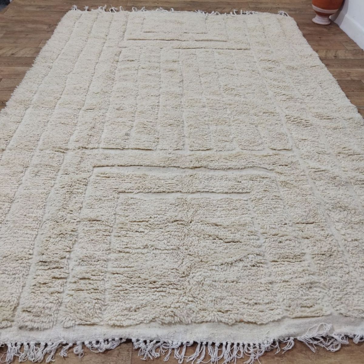 Tapis traditionnel marocain en laine, tissé à la main, qui perdurera pendant des années. Porteur d'art, d'histoire, de douceur et d'élégance, il s'intègrera harmonieusement à tous les styles de décoration, apportant une touche ethnique et chaleureuse à votre intérieur. Nous utilisons les meilleures techniques de tissage pour nos tapis, qui sont confectionnés à partir de 100% de laine.