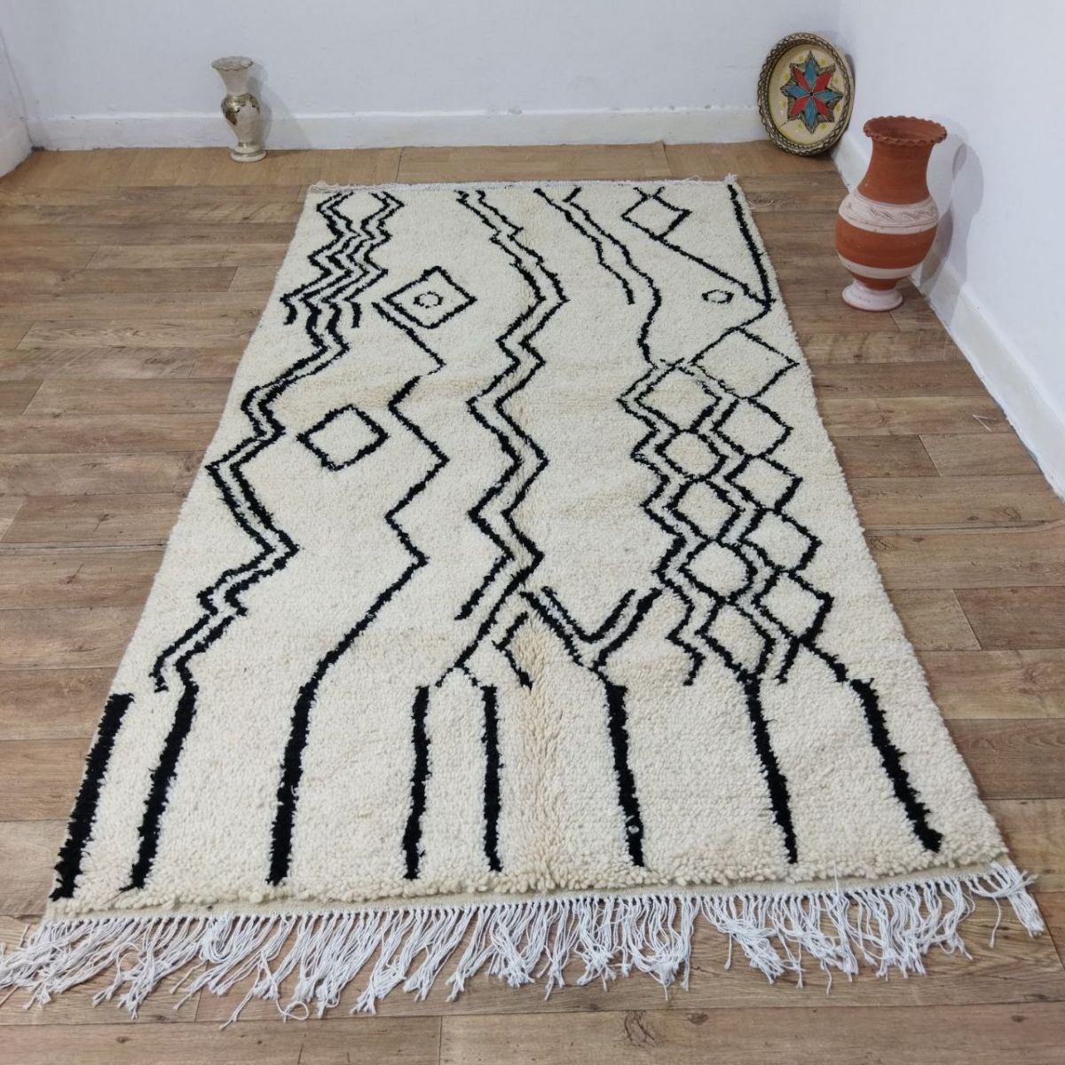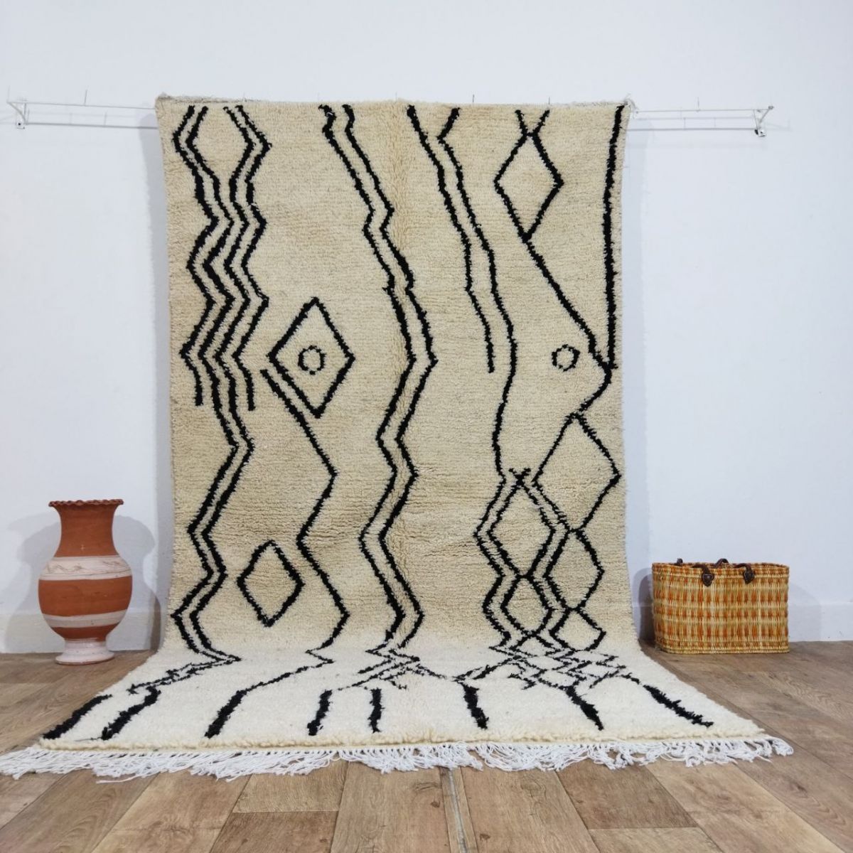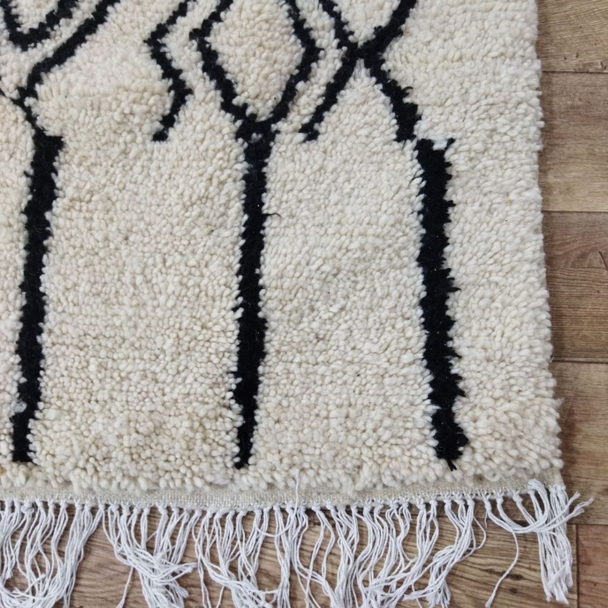 Tapis traditionnel marocain en laine, tissé à la main, qui perdurera pendant des années. Porteur d'art, d'histoire, de douceur et d'élégance, il s'intègrera harmonieusement à tous les styles de décoration, apportant une touche ethnique et chaleureuse à votre intérieur. Nous utilisons les meilleures techniques de tissage pour nos tapis, qui sont confectionnés à partir de 100% de laine.