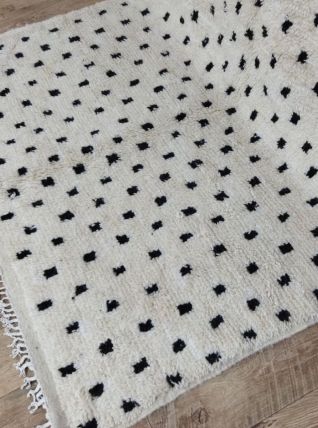 Tapis traditionnel marocain en laine, tissé à la main, qui perdurera pendant des années. Porteur d'art, d'histoire, de douceur et d'élégance, il s'intègrera harmonieusement à tous les styles de décoration, apportant une touche ethnique et chaleureuse à votre intérieur. Nous utilisons les meilleures techniques de tissage pour nos tapis, qui sont confectionnés à partir de 100% de laine.