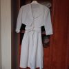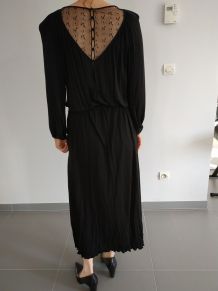 Vendue avec le jupon bordé de dentelle qui lui assure un joli tombé vintage gonflant. portée une seule fois et conservée pendant des années dans un carton avec papier de soie, le blanc de cette robe est un peu passé par endroit. Elle pourra être ravivée ou teintée, pour être portée mariage. Soirée vintage, shooting etc...