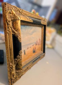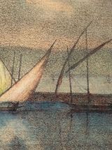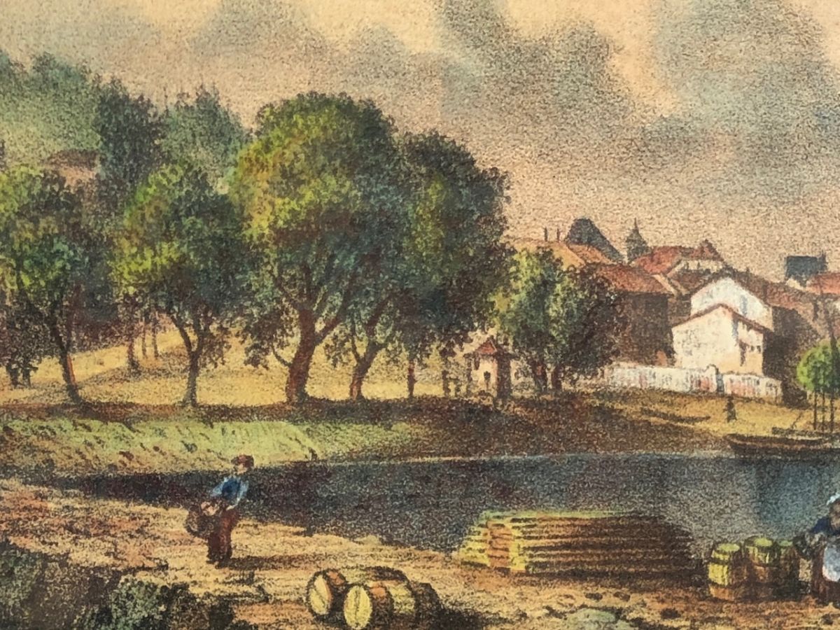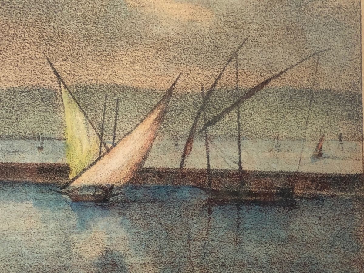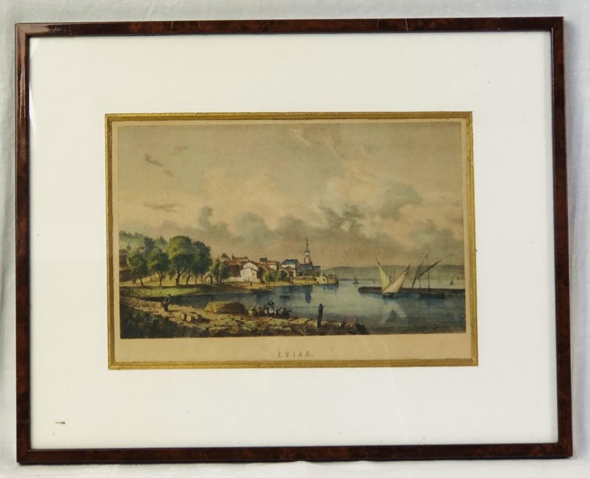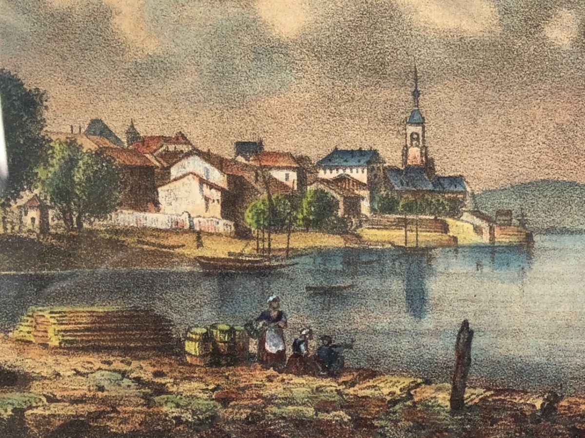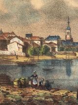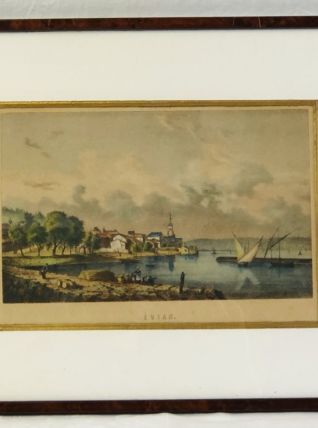 Jolie estampe du début du siècle, représentant une vue du lac Léman côté Evian.