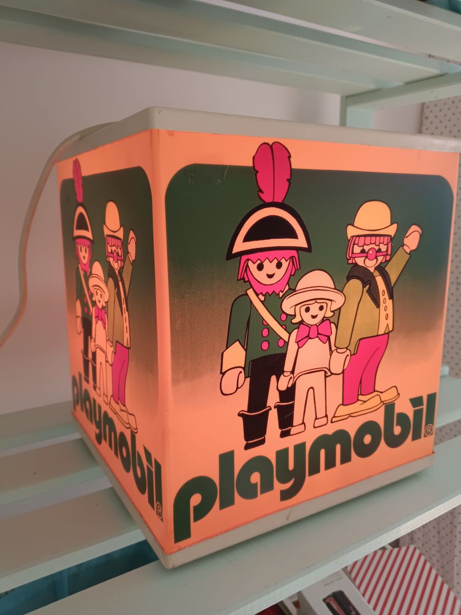 Lampe publicitaire de magasin a poser ou suspendre pour la celebre marque Playmobil