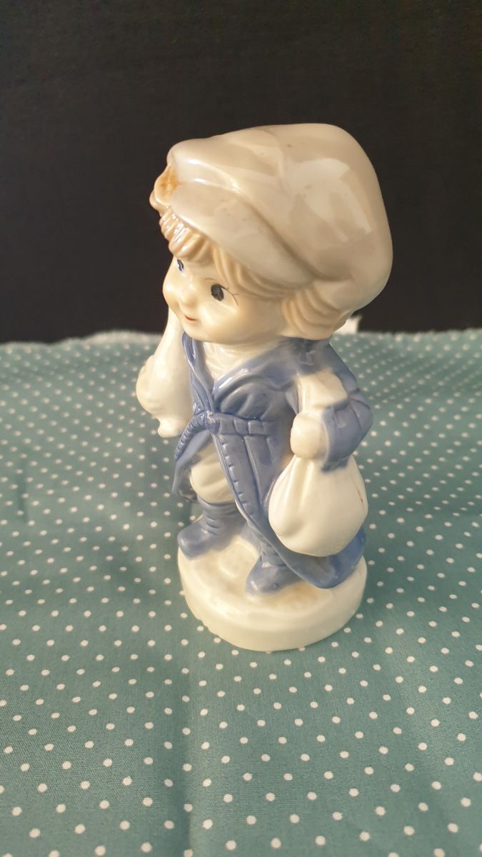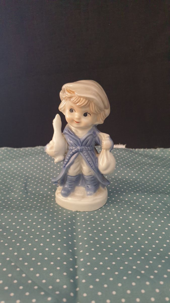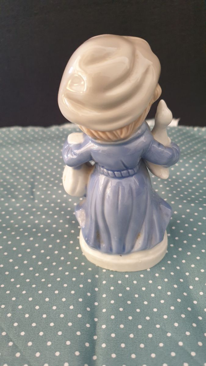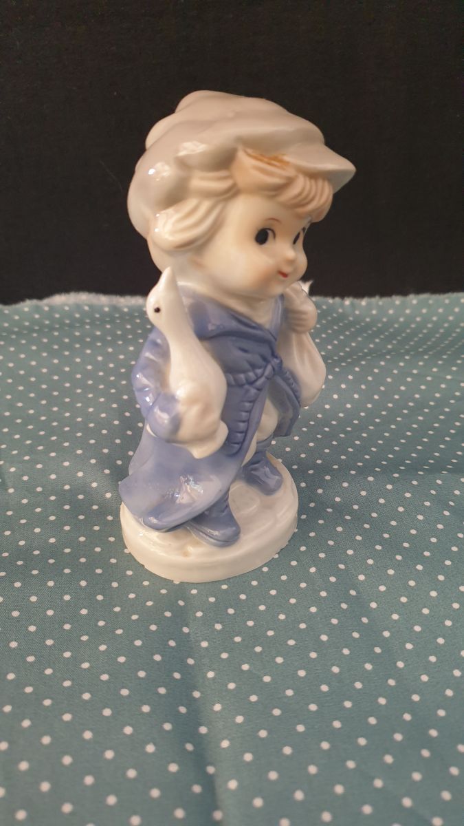 Figurine "enfant à l'oie" dans une jolie de teinte bleue lavande .