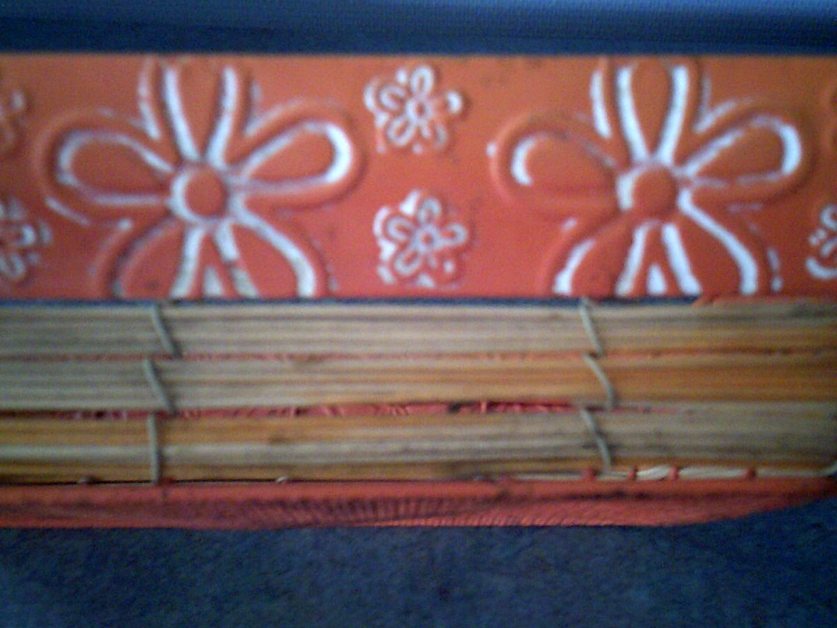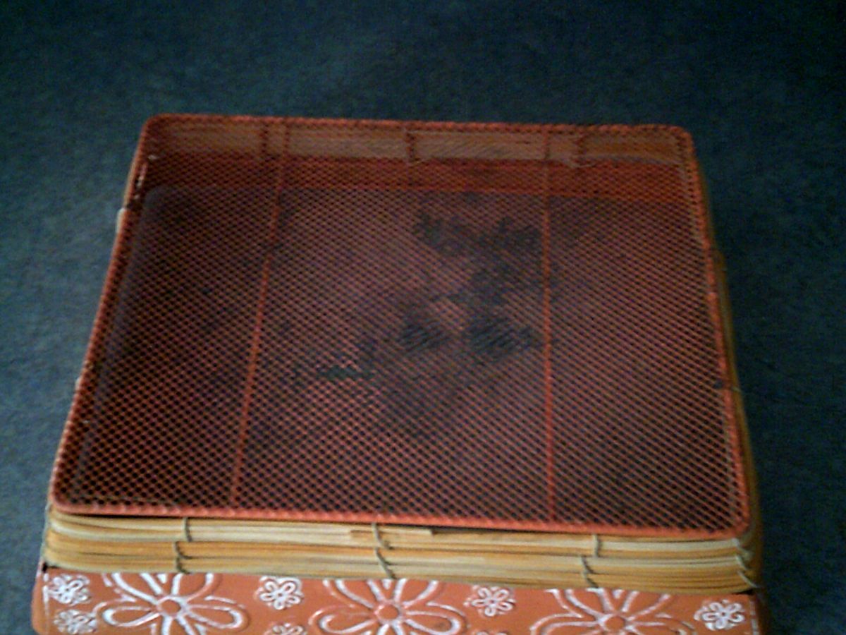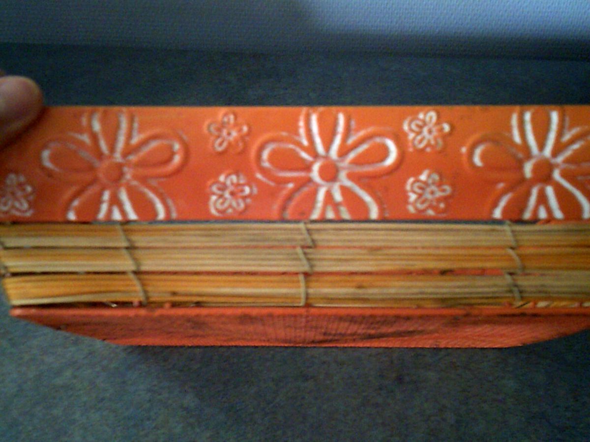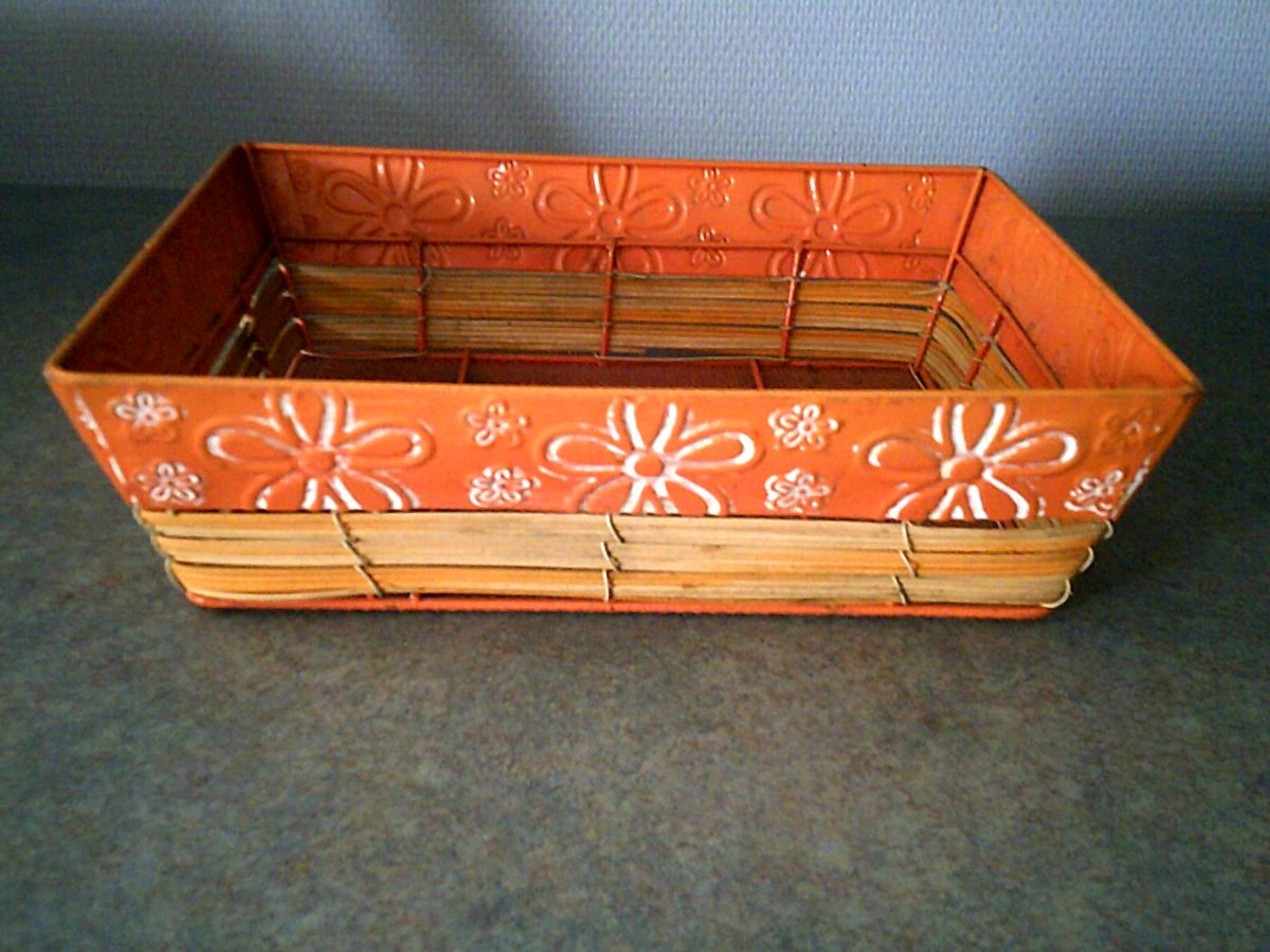 Panier le bord orange avec les fleurs est en métal et le fond du panier