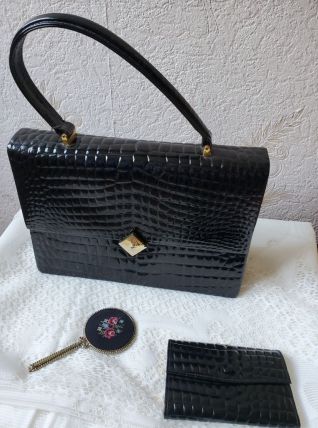 Sac vintage très bon état avec son porte-monnaie et son miroir de poche.