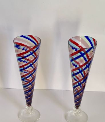 Deux belles flûtes en verre de Murano