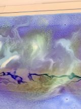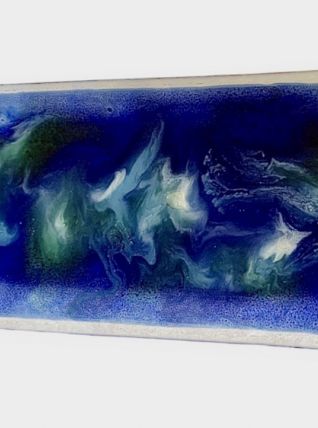 Magnifique » toile » de bleus pour ce plat en verre d’art de Murano ( acquisition années 90 )