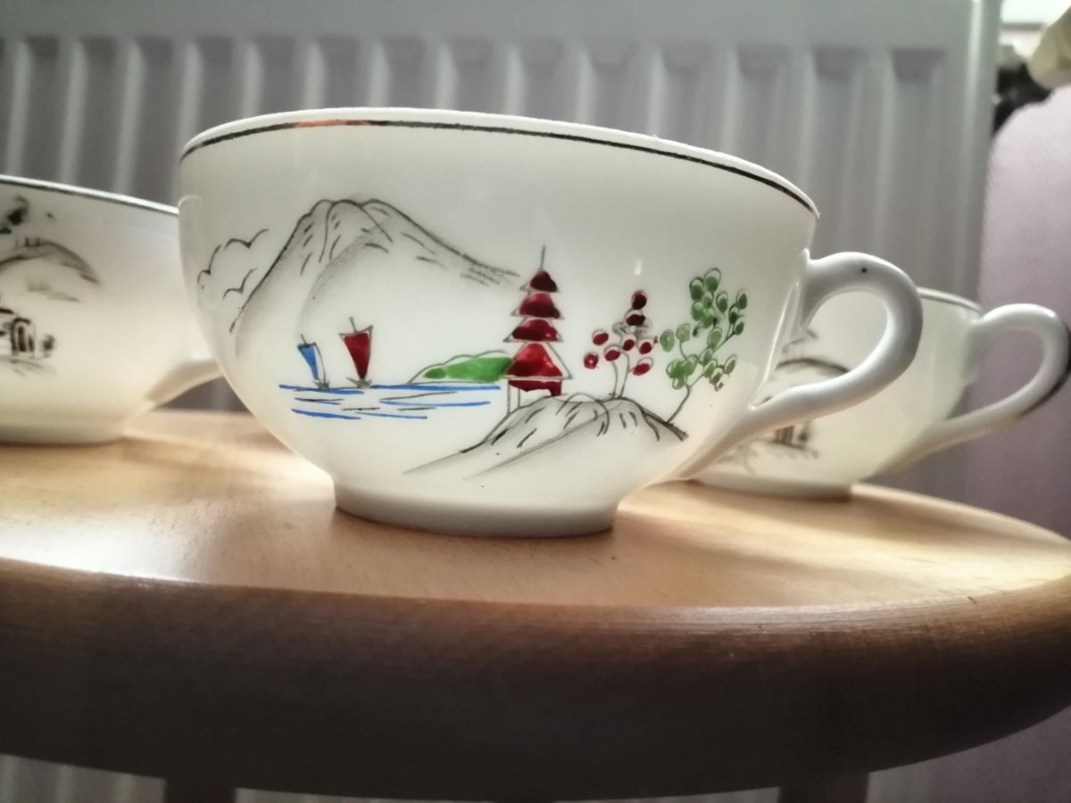 Les tasses sont en porcelaine très fines, très délicates (voir photo). les motifs représentent des paysages du japon ;