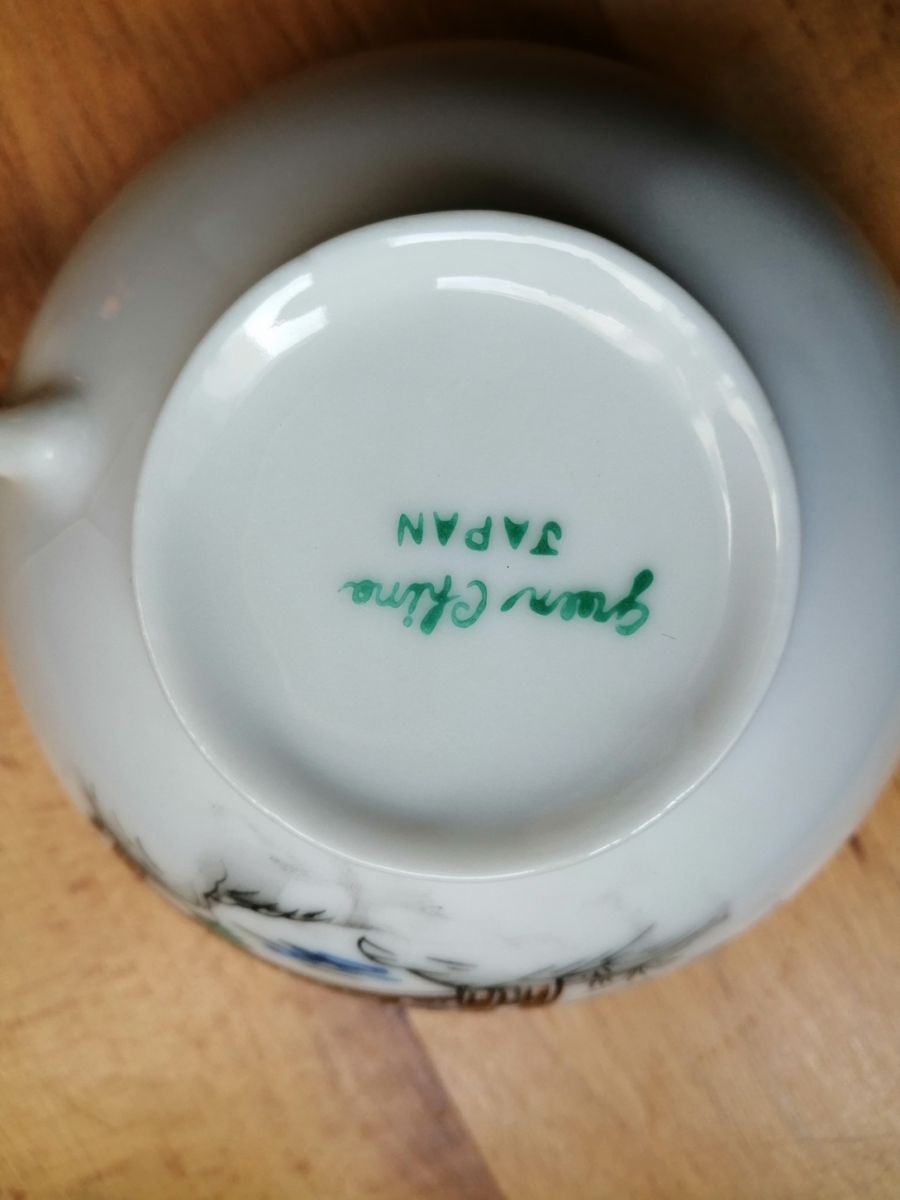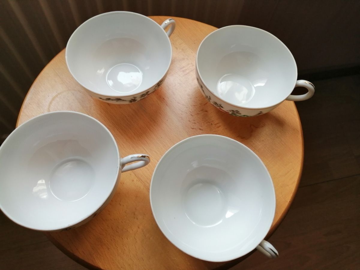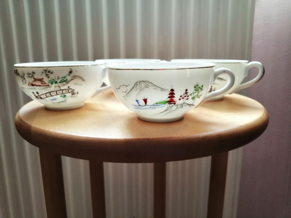 4 Jolies tasses à thé (ou café ), fabriquées au Japon, pour le marché européen. Porcelaine fine asiatique vintage.