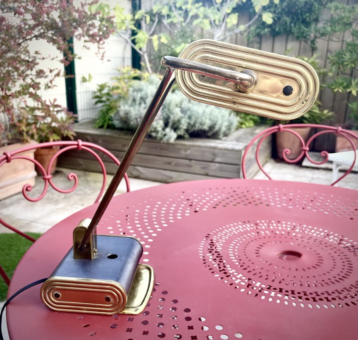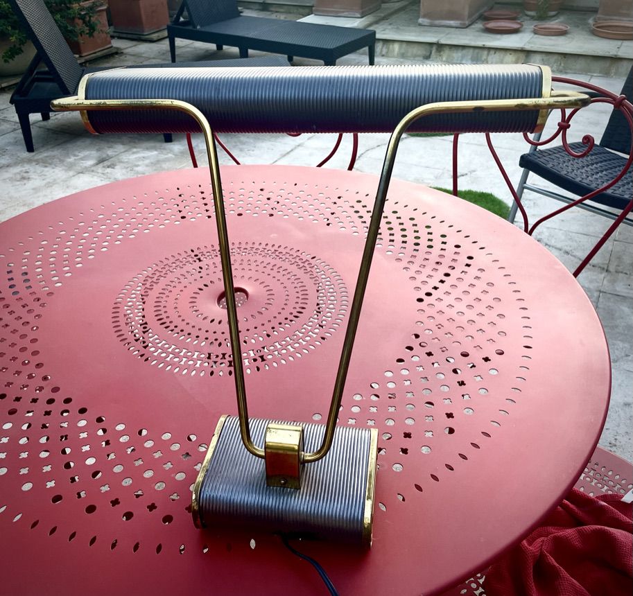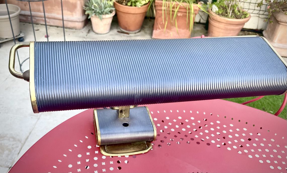 Lampe Jumo chromée (petites imperfections sur le métal chromé comme sur photo) et tôle d’aluminium noir de la designeuse Eileen Gray. Vintage, elle a été créée en 1945 et produite jusqu’en 1955. Les ampoules sont des LED qui ne chauffent pas la tôle. Pièce rare et collector.