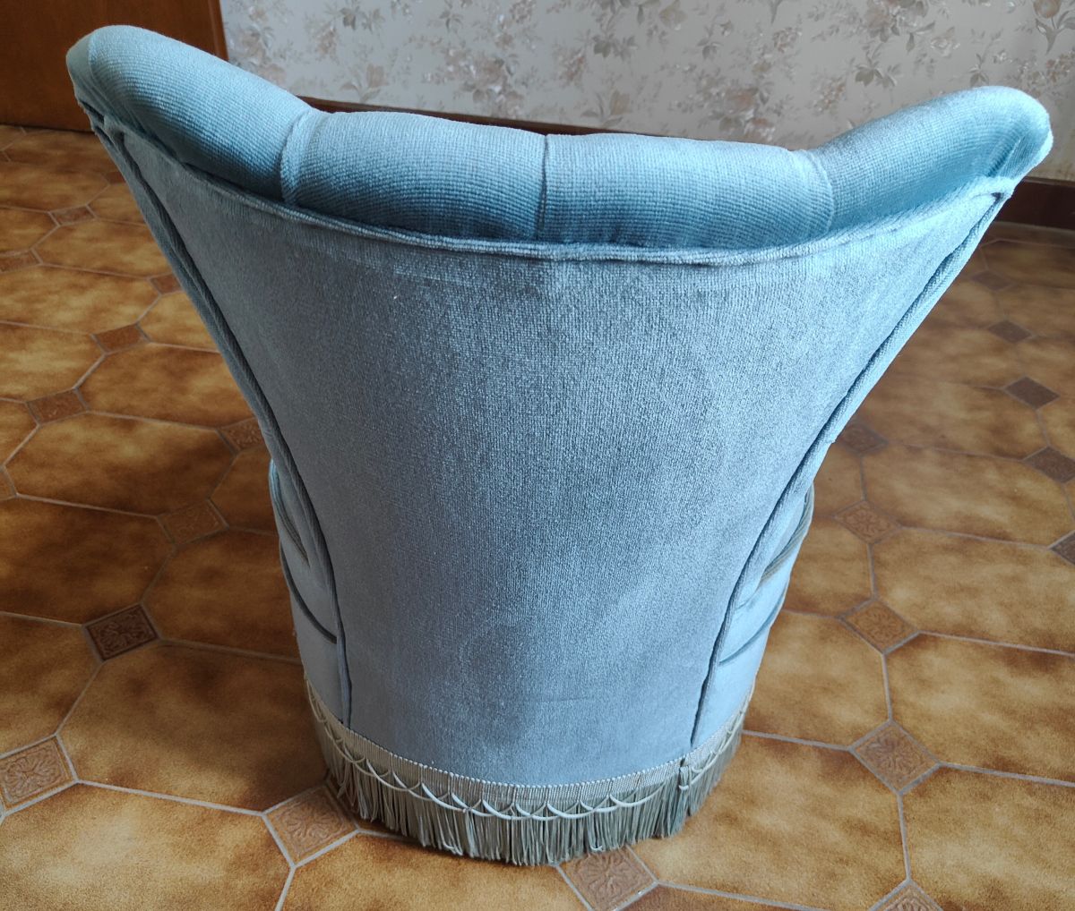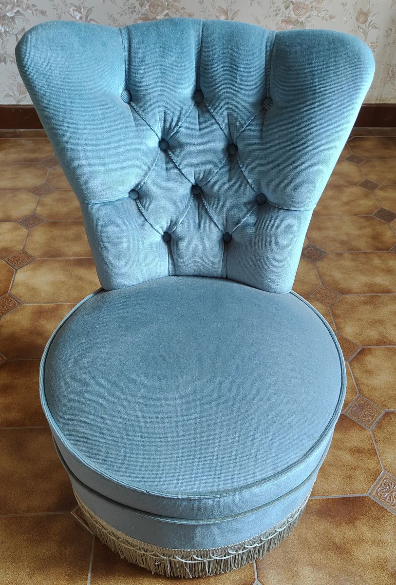 RARE - Fauteuil crapaud en velours vintage datant des années 50.