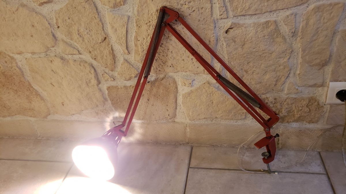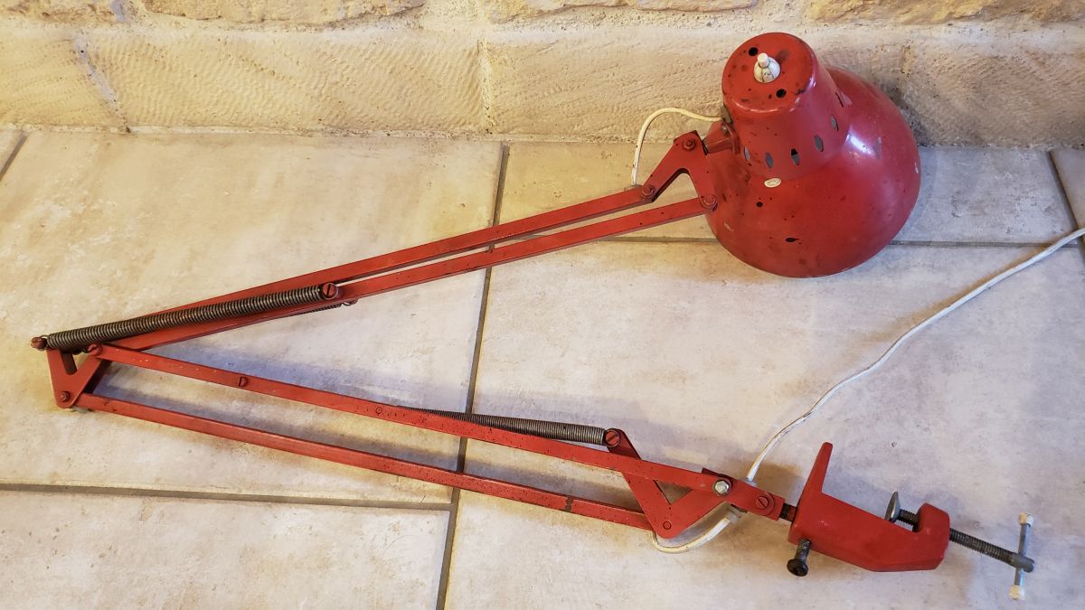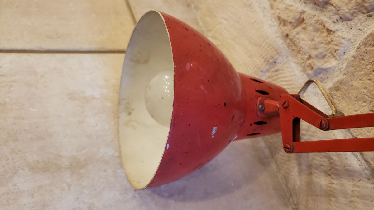 Lampe rouge de bureau, d'atelier ou d'architecte. Libre à vous d'en faire l'usage souhaité.